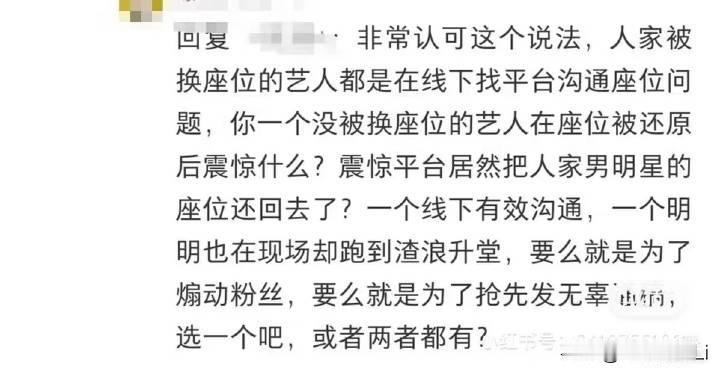 大家都是实事求是的发图文,座位图,女星大粉和营销号拼命发c位通稿图,要不是女星自