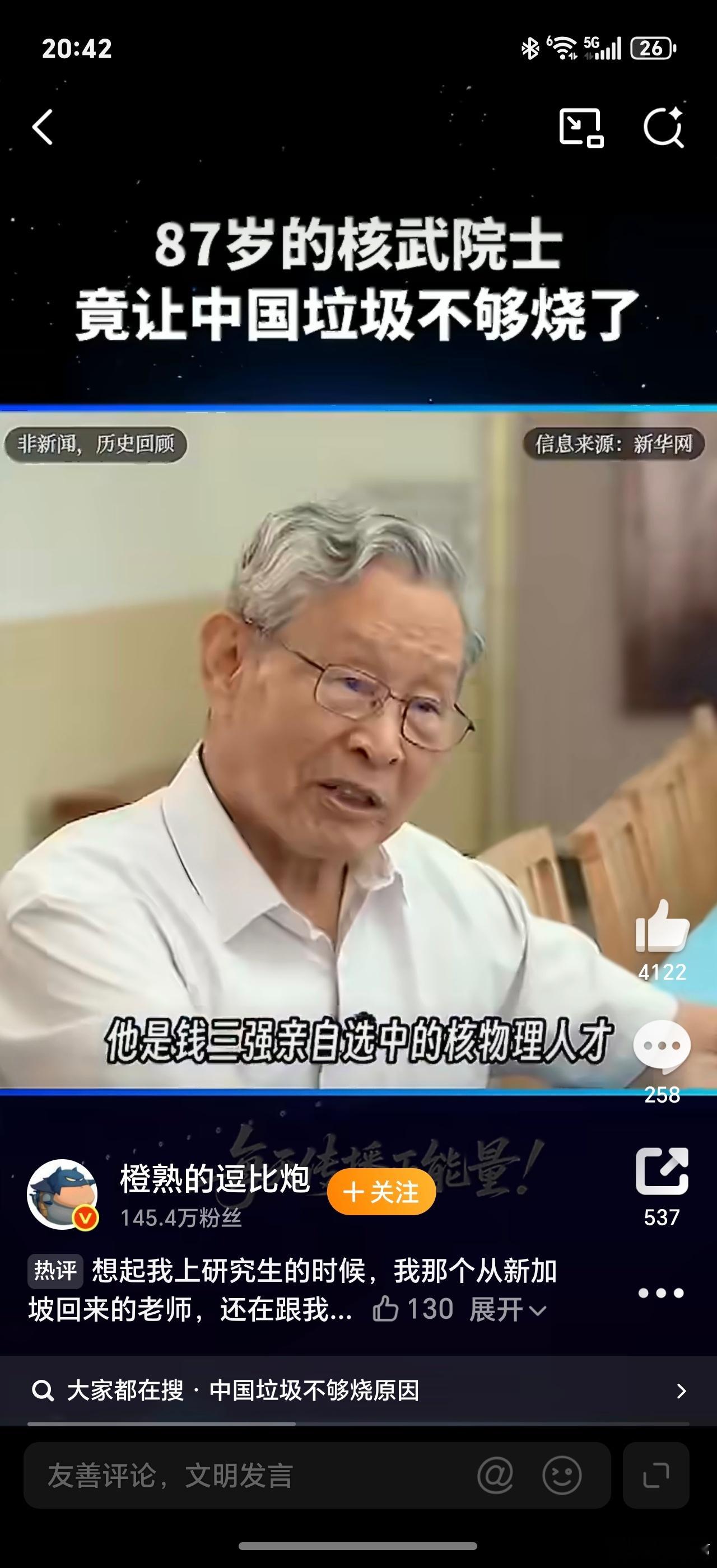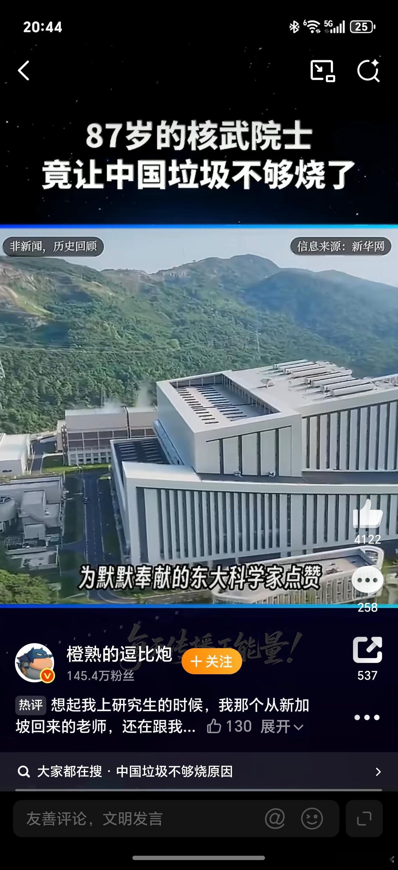 87岁的核武院士让中国垃圾不够烧科技改变生活,解决城市垃圾烦恼并做到合理利用,这确实对社会贡献巨大。