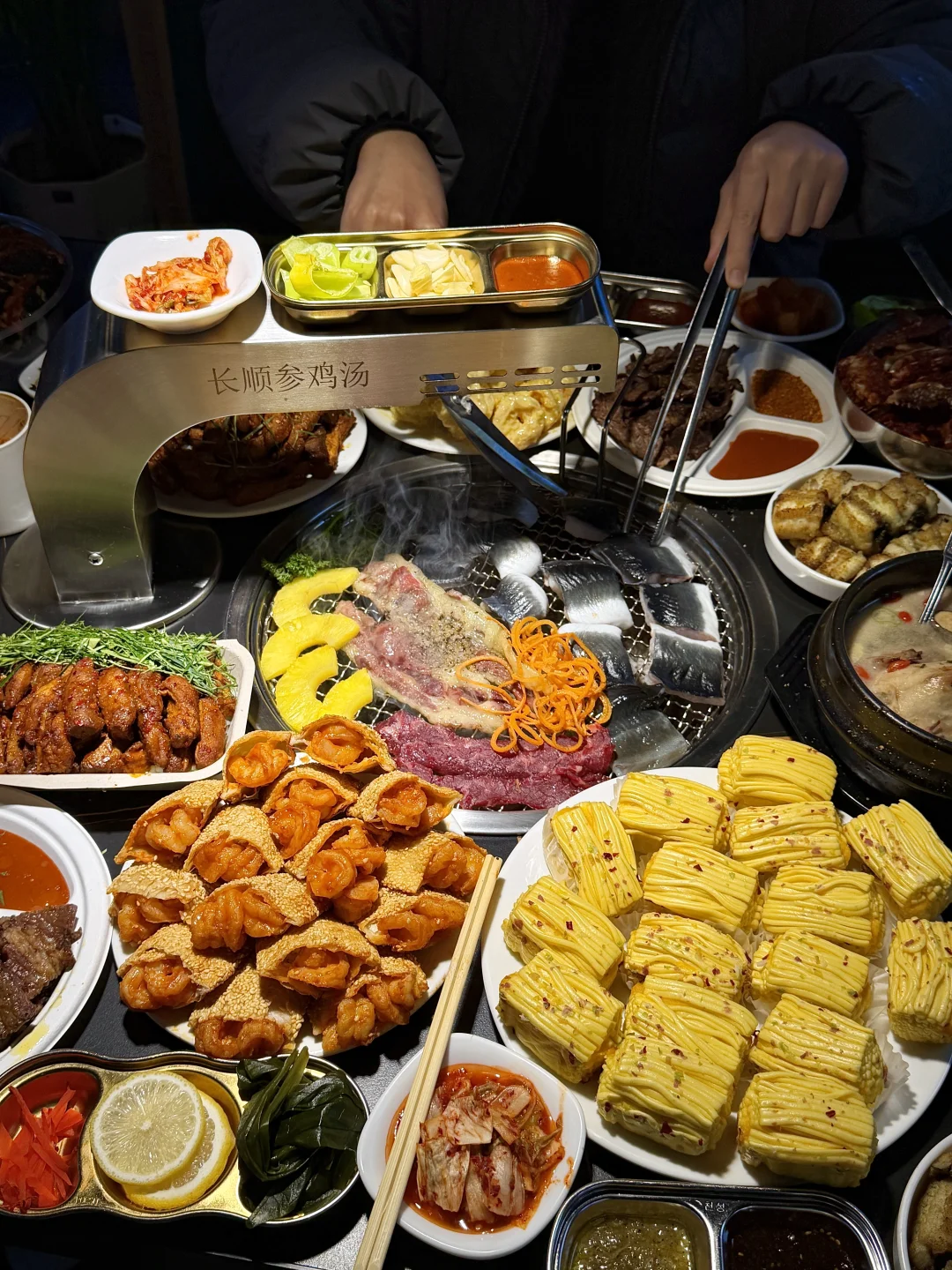 该怎么形容这一口虾仁饼有多好吃啊!! 不愧是沈阳本地人口口相传的店!叫:长顺参鸡汤炭火烤肉,就在韩百商场对面。真的名不虚传好好吃啊🤤我们五个人吃下来人均才四五十,已列入我和闺蜜来沈阳的必吃清单了 不夸张,他家就没有一个不好吃的!烤牛肋条、酱蟹taco、芥末虾球、桂花软酪……亲测好好吃~还有参鸡汤!一大碗满满都是料,里面有药材、糯米还有鸡肉吃得出品质好~趁热吃真的一口惊艳😭😭我们吃完还打包了