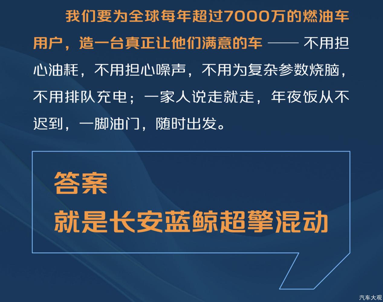 不妥协性能,不将就体验。这是全球燃油车用户的真实需求,也是长安汽车打造“蓝鲸超擎混动”的金标准。