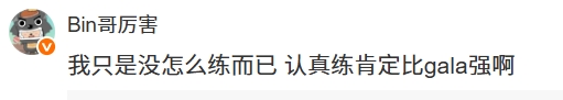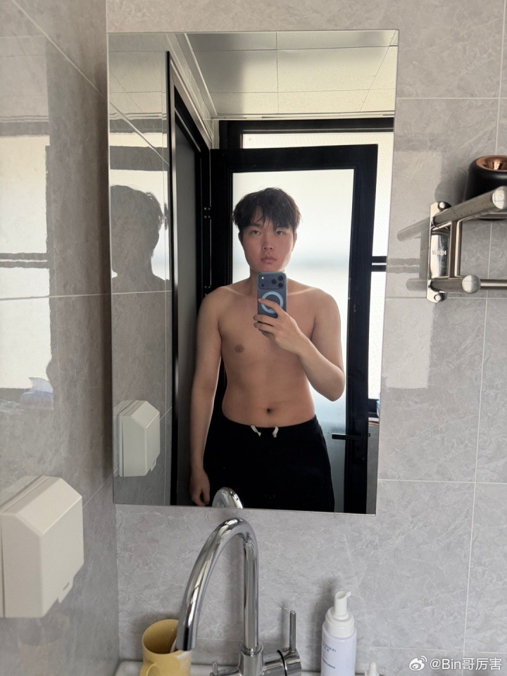 直播吧2月8日讯Bin大哥在BLG不敌AL后,在社交平台上十分活跃,先是更博:我依然是世一上,随后在GALA晒出身材照后,凌晨2点也晒出自己身材照,表示:其实我的也还行,我只是没怎么练而已认真练肯定比gala强啊!