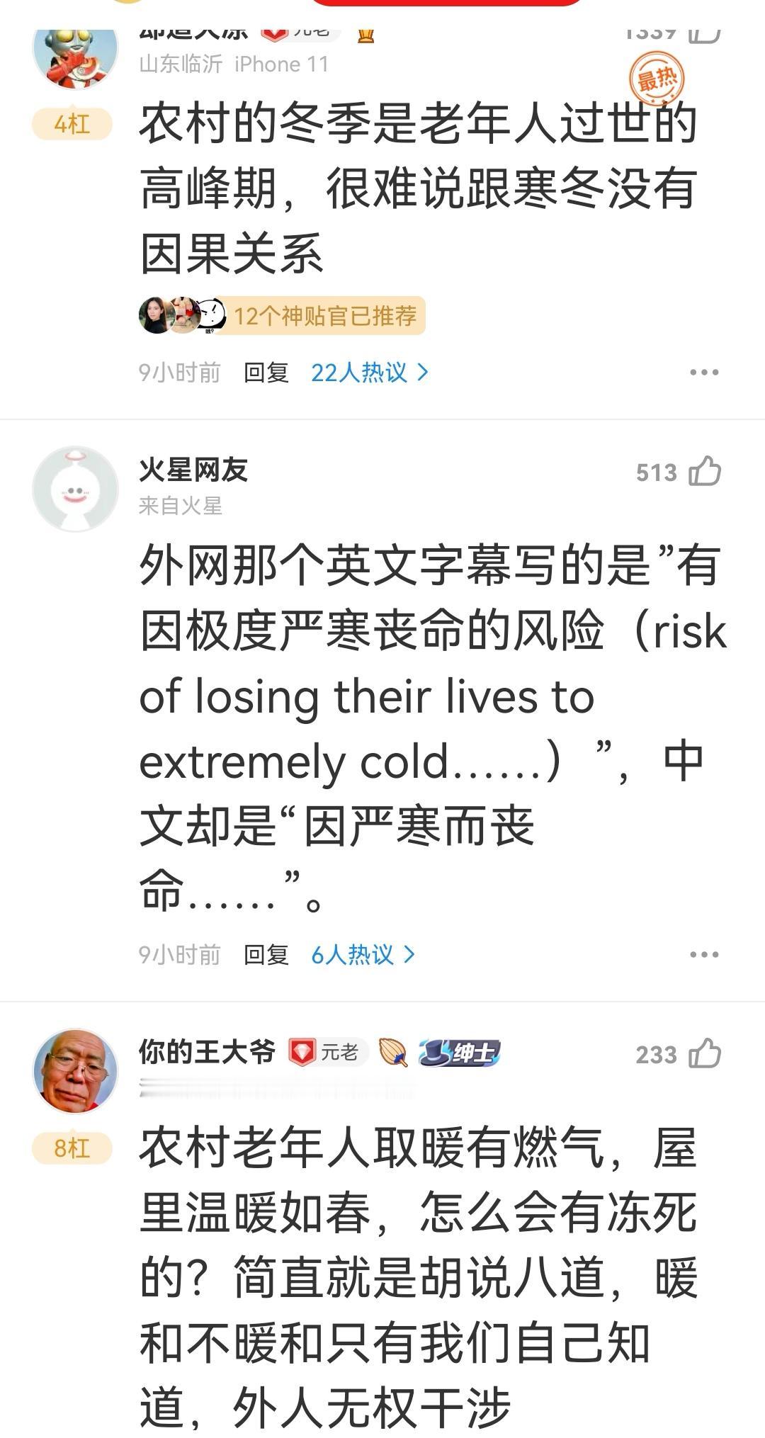这种号就该封!没有听说过有人冻死,除非在野外出事故了。换成美国,有几十万人流浪街头,冻死是可能的!
