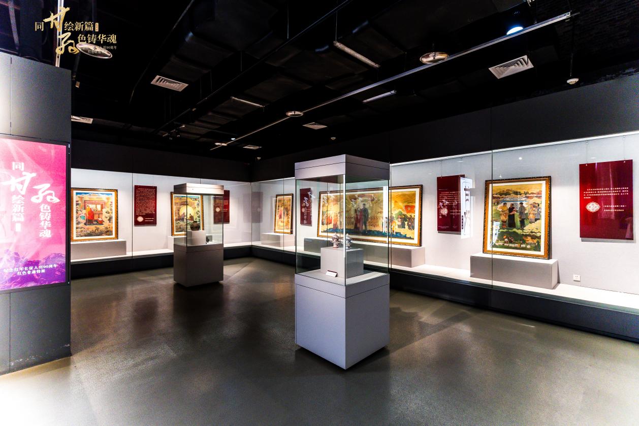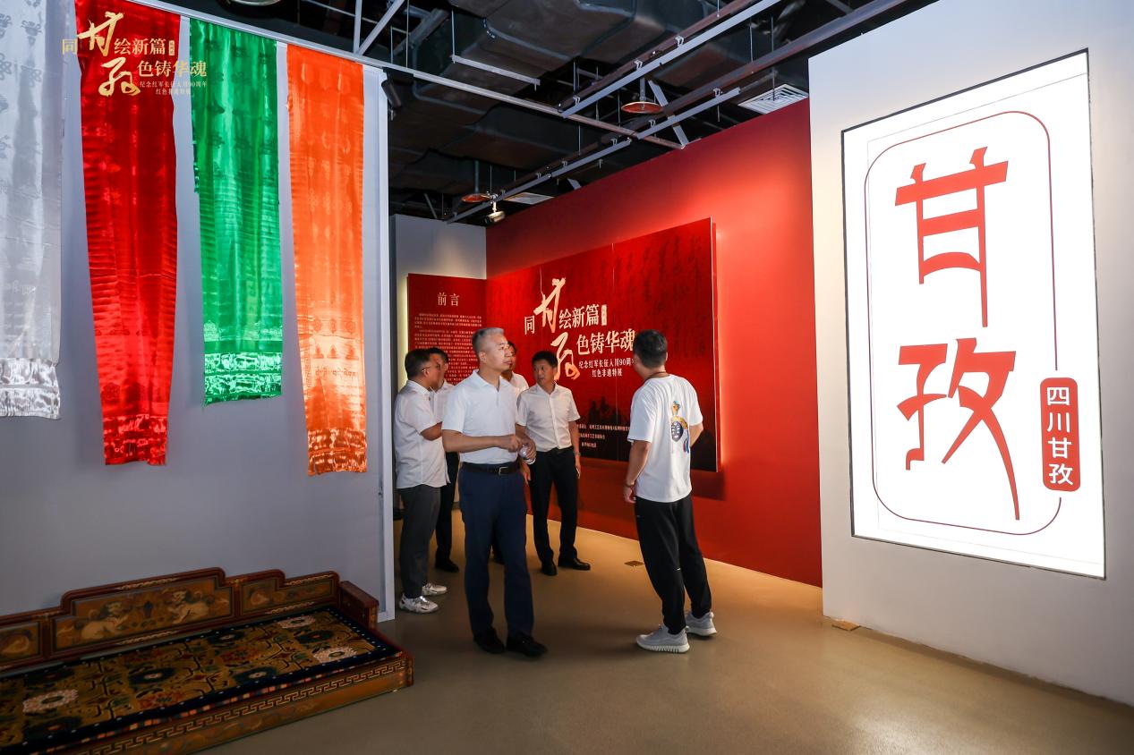 展览以唐卡艺术为核心表现手段,结合雕版印刷等多种非遗形式,设立“甘孜会师·红韵丹心”“赤粮千钧·征途共负”“非遗刻史·九轶弥坚”三大板块,系统呈现长征时期汉藏同胞团结一心、共渡难关的历史画卷,突出展示甘孜州在红色遗产保护与传承中取得的成就。