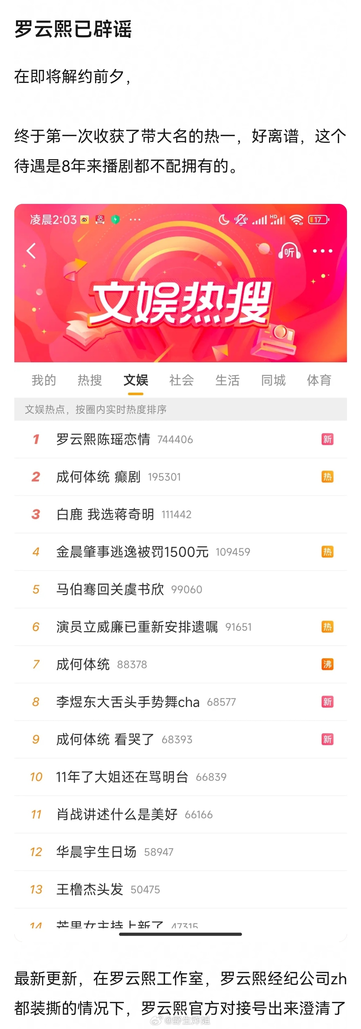 罗云熙播剧的时候都没上过第一,他的宣传断了好几年,商务也是,就是很典型的到期不续和公司切割的状态