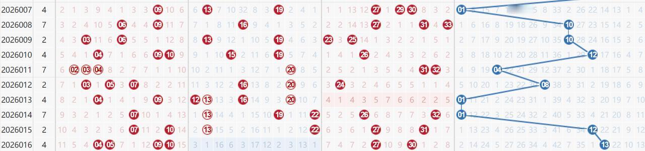 双色球走势依然有迹可循:04 05 09 10继续密集出号带动一区小号热度,而且还都是连号,出号地点很接近,另外27是重号30是斜连号,红球不论大小都是延续热号趋势,而且刚刚兴起似乎还没到转折时刻;蓝球12 13斜连号开出,大冷号终于有回补迹象,但振幅始终不稳也增加了对出号位置的预判难度啊!