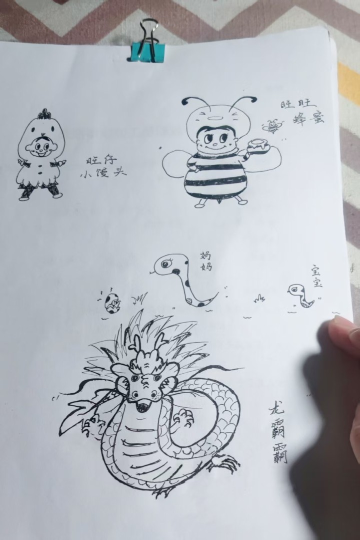 说起孩子的这份设计天赋,徐女士笑着说,可能是受她平时爱写写画画的影响。“小时候我就特别爱画画,可惜爸妈不懂艺术相关的门道,没能让我去专业学习。不过,我的这份喜欢从没断过,现在刷到网上的画画教学视频,我还是会忍不住停下来认真看,一点点跟着学技巧、练手感。刚开始我也会纠结,要是当年能系统学一学该多好,后来慢慢想通了——没必要美化没走过的路,现在这样把画画当成纯粹的爱好,不用有压力,画得开心就足够了。”