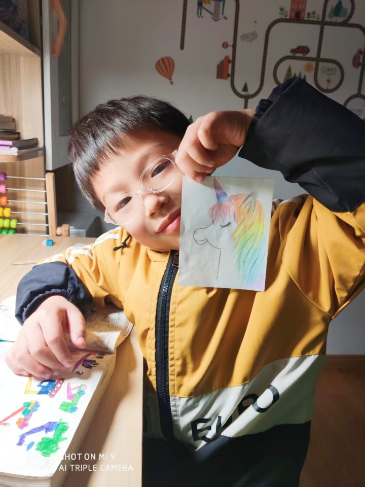 孩子小时候特别喜欢独角兽铅笔套,非要让她画下来,她就画了一个。“孩子一直珍藏着,今年是马年,翻出来看看,觉得这份童年回忆也格外有意义。”