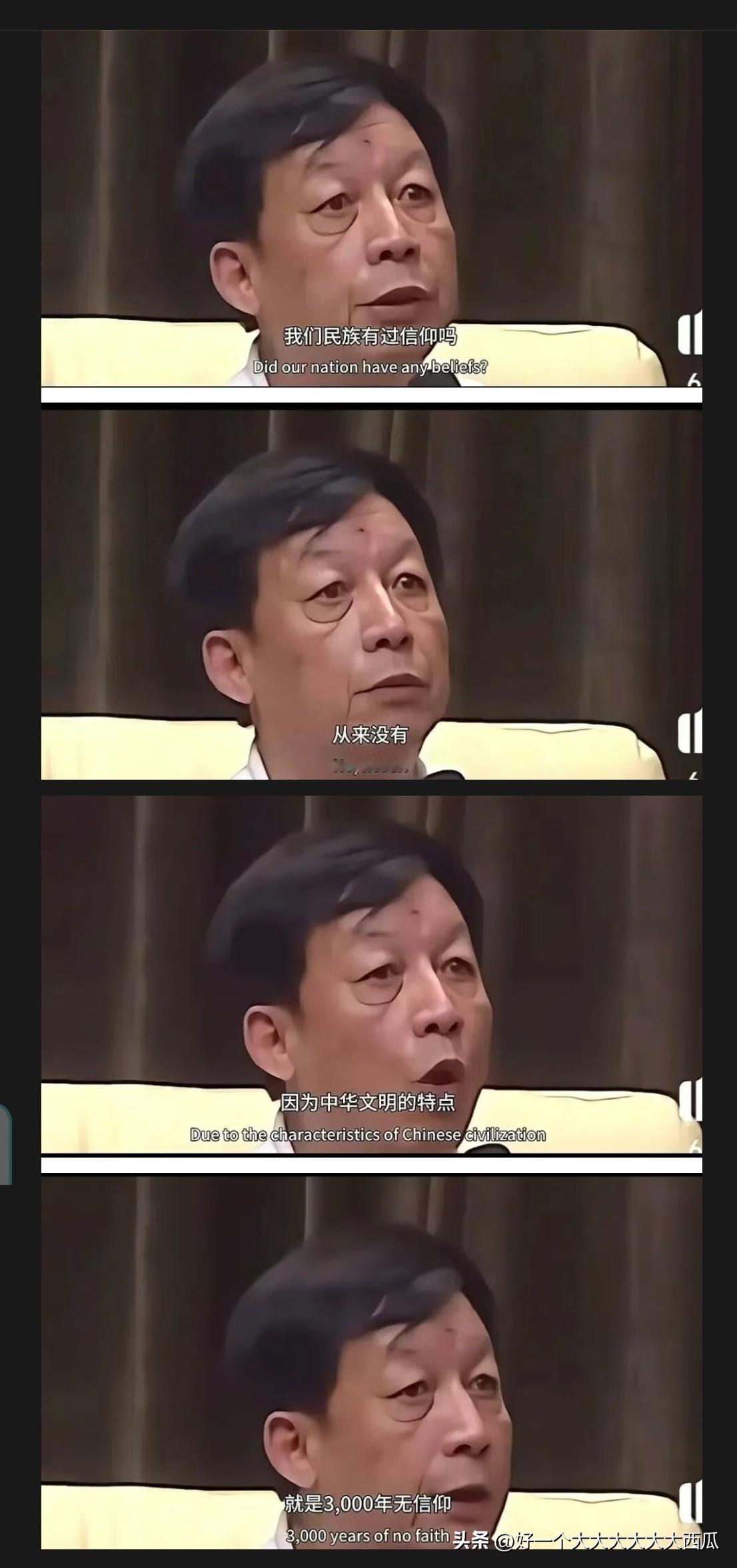 易中天曾经说中国人没有信仰, 所以才会很多时候突破底线, 什么坏事都干得出来。 可是这次从美国斩杀线开始, 到现在爱泼斯坦案揭露出美国上层那种吃人的罪恶的时候, 易中天为代表的慕洋派沉默了, 他们没有对这些事情评价哪怕一句话。 如果说中国人无信仰的话, 当初义和团不会因为洋人在我们国家干出吃小孩的恶行就奋起反抗, 如果说中国人无信仰的话, 就更加不可能出现红星照耀中国的场面, 只能说易中天这样的公知的话要少听, 因为他们只是在为某一方做宣传罢了, 真相不在他们口中。