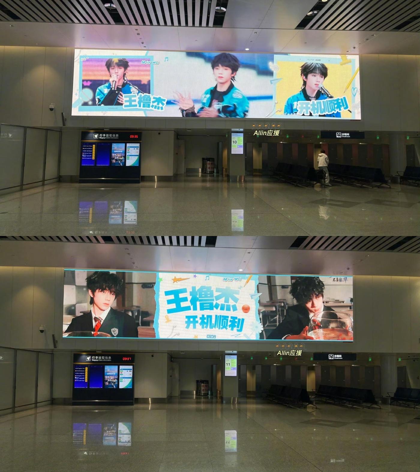 王橹杰新剧开机应援 王橹杰新剧《我们的少年时代2》开机海口机场大屏应援上线