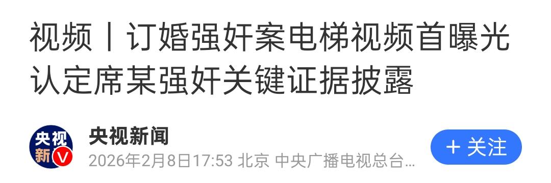 看了这段视频之后,对山西订婚强奸案的判决,应该不会有人存在异议了。 这段案发之前电梯里的视频显示,两人在电梯里有拉扯拖拽动作,席某用有力的大手紧紧握住被害人的手腕。 由于力量相差悬殊,即便受害人用尽全身的力气也无法挣脱,最终导致强奸案的发生。 此前,有一些网友对法院的判决结果提出质疑,认为以强奸罪判处席某有期徒刑三年证据不足。 其实,审理这个在全国有很大影响的案件,法官是极其慎重的,没有充足的证据,不进行充分商讨,是不敢轻易定罪的。 其他证据不说,单单是从这段电梯内的监控录像来看,席某的行为已经符合违背妇女意志的要件。 可能,席某认为,既然已经订婚了,就可以随便发的性关系。但是,他可能不知道,即便是结婚了,也有可能构成强奸罪。 不管这个案件有多么复杂,也不管过程有多么复杂,从证据和事实来看,席某的罪行是被坐实了。