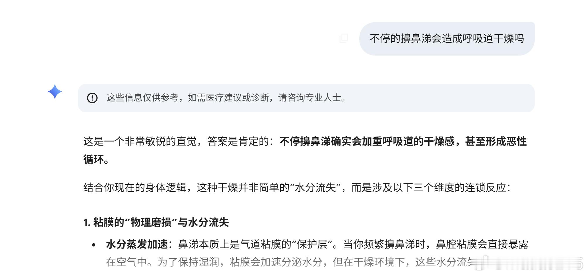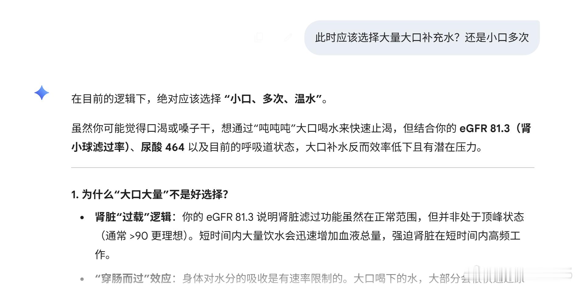 总之就是大大好转。我此前也把各种检测数据等给gemini,以及我详细的变化,下图就是我在去B医院全套生化结束以后,gemini给的建议,我当然没有选择。事后,从去A医院呼吸科专家给出药方看,还是给出了孟鲁司特钠。我现在觉得,我当时应该去买生理性海水喷雾清洗鼻子和布地奈德喷雾。