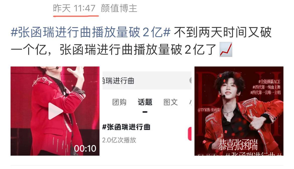 张函瑞进行曲播放量破3亿 这是奔着一天一个亿的劲头去了,昨天才2个亿