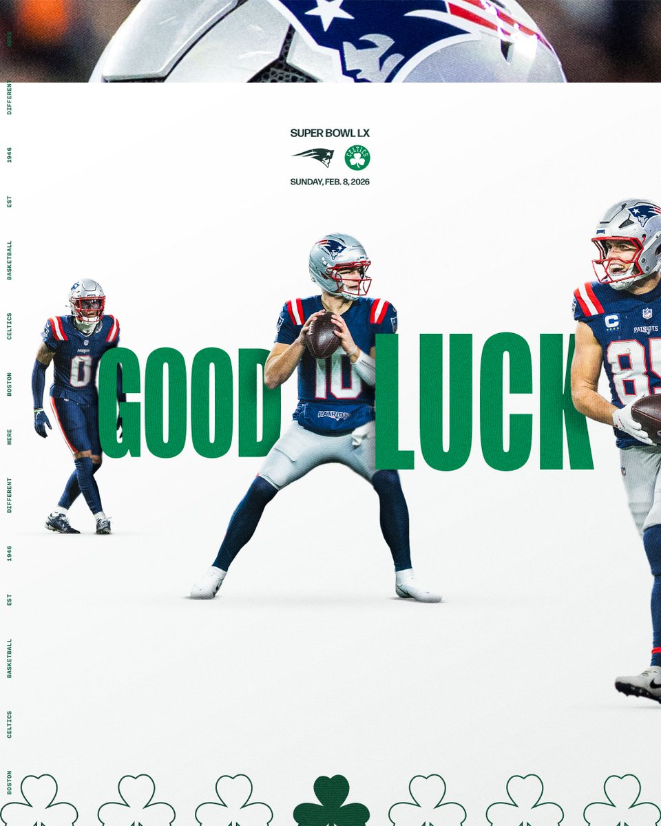 北京时间2月9日07:30,第60届超级碗(SuperBowlLX)将在加州圣克拉拉的李维斯球场打响,新英格兰爱国者队将对阵西雅图海鹰队。赛前,凯尔特人官方推特发布支持信息:"WEALLWEGOT.WEALLWENEED.祝@patriots在#SBLX好运"。这是两队继2015年第49届超级碗后的再度交锋,当时爱国者以28-24险胜。若本场获胜,爱国者将夺得队史第七座超级碗冠军,超越匹兹堡钢人队独享NFL历史第一。本赛季,爱国者从2024年的4胜13负鱼腩球队蜕变为14胜3负的AFC冠军,创造了单赛季10场胜场提升的NFL纪录。海鹰队同样以14胜3负的战绩夺得NFC头号种子,其防守组场均仅失17.2分高居联盟第一。两队本赛季休赛期分别投入3.65亿和2.48亿美元进行补强,攻防两端均属联盟顶级水准。这场宿命对决不仅关乎冠军归属,更是海鹰队完成历史救赎的绝佳契机。