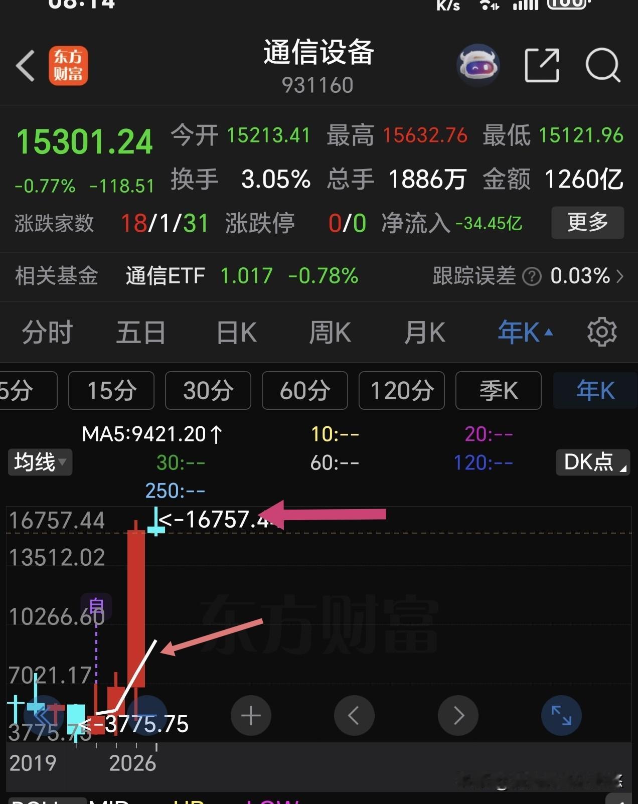 2026年哪些板块存在低位机会?哪些板块处在高位风险? 2026年要改变基金买卖操作思路,寻找目前处于低位的板块操作,中长期持有,机会大于风险,胜算概率大。反而那些处在高位的板块不能长期持有,只能做短线操作,否则会亏损累累。 怎么判定目前是处在低位和高位?一个简单的办法就是看这个板块的年线k线图走势,那些远离5年线的就是高位板块,比如通信设备与 cpo 人工智能 5G,半导体芯片 卫星通信等等。那些与5年线比较接近的就是低位板块,比如中证传媒生物医药创新药光伏产业等板块。 每个板块走势最终都要回归依托5年线上行,那些脱离5年线比较多的板块要逐步归位,回调空间很大。而那些在5年线附近震荡的板块后期上涨空间会更大,可以中长期持有待涨,虽然途中也会来回波动,但是最后不输。 不是说高位板块不能做,而是不能中长期持有,因为它随时都可以发生跳水回调,做小波段最合适。 本文长线标准是指一年以上。 下图是几个高低位板块代表。 以上观点仅供参考,不构成投资依据。点赞转发评论关注,投资理财不迷路。