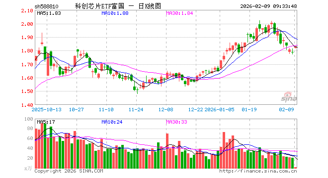 科创芯片ETF富国(588810)业绩比较基准为上证科创板芯片指数收益率,管理人为富国基金管理有限公司,基金经理为张圣贤,成立(2024-12-30)以来回报为78.81%,近一个月回报为1.64%。