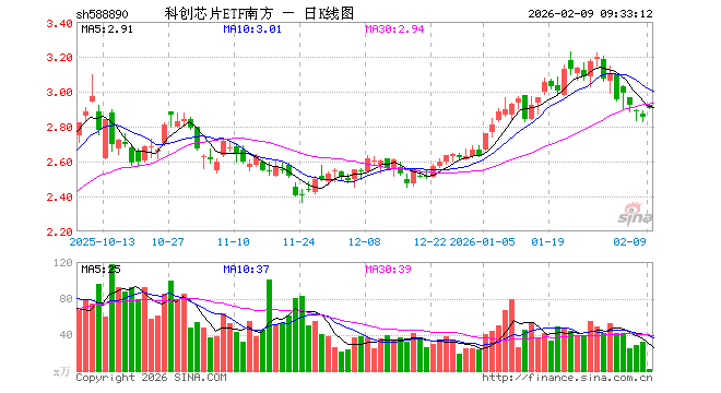 2月9日,科创芯片ETF南方(588890)开盘涨2.28%,报2.920元。科创芯片ETF南方(588890)重仓股方面,中芯国际开盘涨1.86%,海光信息涨3.43%,寒武纪涨2.22%,澜起科技涨4.49%,中微公司涨1.62%,拓荆科技涨1.72%,芯原股份涨4.33%,华虹公司涨3.64%,沪硅产业跌0.77%,东芯股份涨1.29%。