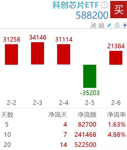 亮眼的业绩表现吸引资金持续涌入,截至2月6日,科创芯片ETF(588200)年内净流入47.38亿元。