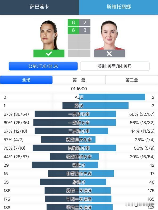 澳网战况!决赛对阵诞生 大黑马0-2惨遭淘汰 中国金花继续刷新纪录[送心] 1月31日,2026年澳网女单决赛战罢,5号种子莱巴金娜经过三盘苦战,以6—4, 4—6, 6—4的比分击败头号种子、卫冕冠军萨巴伦卡,夺得了个人职业生涯第二座大满贯冠军奖杯。而在这场决赛前两天,当两位球员刚刚会师时,一场关于统治权与复仇的终极对话就已写好了序章。 萨巴伦卡的晋级之路堪称统治级,面对本次赛事的大黑马斯维托丽娜,她以6—2, 6—3轻松取胜,连续第四年闯入澳网决赛。这场比赛更深的烙印是一个争议判罚,首盘第四局,萨巴伦卡一次击球后,主裁以她发出的叫声“异常”并干扰对手为由,直接判她失分。 这次罕见的判罚一度引发嘘声,但萨巴伦卡将其转化为了燃料,她赛后直言这反而“帮助了我,提升了我的比赛水平”。 技术统计印证了她的强大,29记制胜分对12记,牢牢掌控局面。此役后,她不仅追平了历史纪录,成为公开赛年代第三位至少连续四年闯入澳网决赛的女子球员,更惊人的是,她达成了连续七次跻身硬地大满贯决赛的伟业,与格拉芙、辛吉斯比肩。 另一边,莱巴金娜的晋级剧本则充满了坚韧。她以6—3, 7—6力克美国好手佩古拉。比赛中,她展现了标志性的强力发球,发出6记ACE球。 她带着一项令人生畏的纪录来到决赛,对阵世界前十球员已经豪取九连胜,其中包括两次击败斯瓦泰克,以及在去年年终总决赛决赛中直落两盘战胜萨巴伦卡。那场胜利,让她成为了首位夺得WTA年终总决赛冠军。 因此,这场决赛远不止是冠军争夺战,它被赋予了多重含义,是萨巴伦卡冲击三连冠、夺取第五座大满贯的加冕礼,也是莱巴金娜为自己正名、夺取第二冠的复仇战。两位在整个晋级途中一盘未失的球员,将女子网坛最犀利的矛汇聚在了罗德·拉沃尔球场。 决赛进程跌宕起伏,完美呼应了赛前所有的铺垫。莱巴金娜凭借更稳定的发挥先下一城。绝境下的萨巴伦卡在第二盘展现了冠军的反弹能力,她的强力正手逼迫莱巴金娜陷入防守,成功扳回一盘。 决定冠军归属的第三盘,萨巴伦卡一度建立起3—0的领先优势,胜利的天平似乎在向她倾斜。然而,莱巴金娜展现了恐怖的逆转能力,连赢五局,彻底扭转了局势。最终,莱巴金娜在自己的发球胜赛局用一记干净利落的ACE球锁定了胜利。 凭借这场胜利,莱巴金娜继2022年温网后,收获了第二个大满贯冠军。她也成为了自2019年的大坂直美以来,首位在一届赛事中连胜三位世界前十夺冠的女球员。对于萨巴伦卡而言,这意味着一项伟大纪录的终结,她错失了实现澳网三连冠的机会。 当女单的硝烟散去,墨尔本公园却为中国网球迷留下了一份巨大的喜悦。在女双赛场,37岁的老将张帅与比利时搭档梅尔滕斯一路奏凯,最终在决赛中以7—6, 6—4击败达尼丽娜/克鲁尼奇组合,成功夺冠。 这是张帅职业生涯的第三座大满贯女双冠军奖杯,也是她时隔七年,再次在澳网捧起达芙妮杯。 颁奖典礼上,张帅身披五星红旗,泪光闪烁。她的感致辞真挚而动情,她感谢了最后时刻才答应与她携手的搭档梅尔滕斯,也特别向看台上的中国网球前辈郑洁致敬。 20年前,正是郑洁/晏紫在澳网为中国网球实现了大满贯零的突破,张帅动情地说,“正是她们的开拓,让我们有机会站得更高。”这一幕,是中国网球精神传承的动人注脚。 从萨巴伦卡与莱巴金娜的巅峰对决,到张帅的传奇复兴,2026年的澳网讲述着关于权力更迭、坚韧复仇与不朽坚持的故事。莱巴金娜用冠军宣告了新时代的强劲挑战,而张帅则用行动证明,只要自己不放弃,年龄从来不是定义传奇的边界。