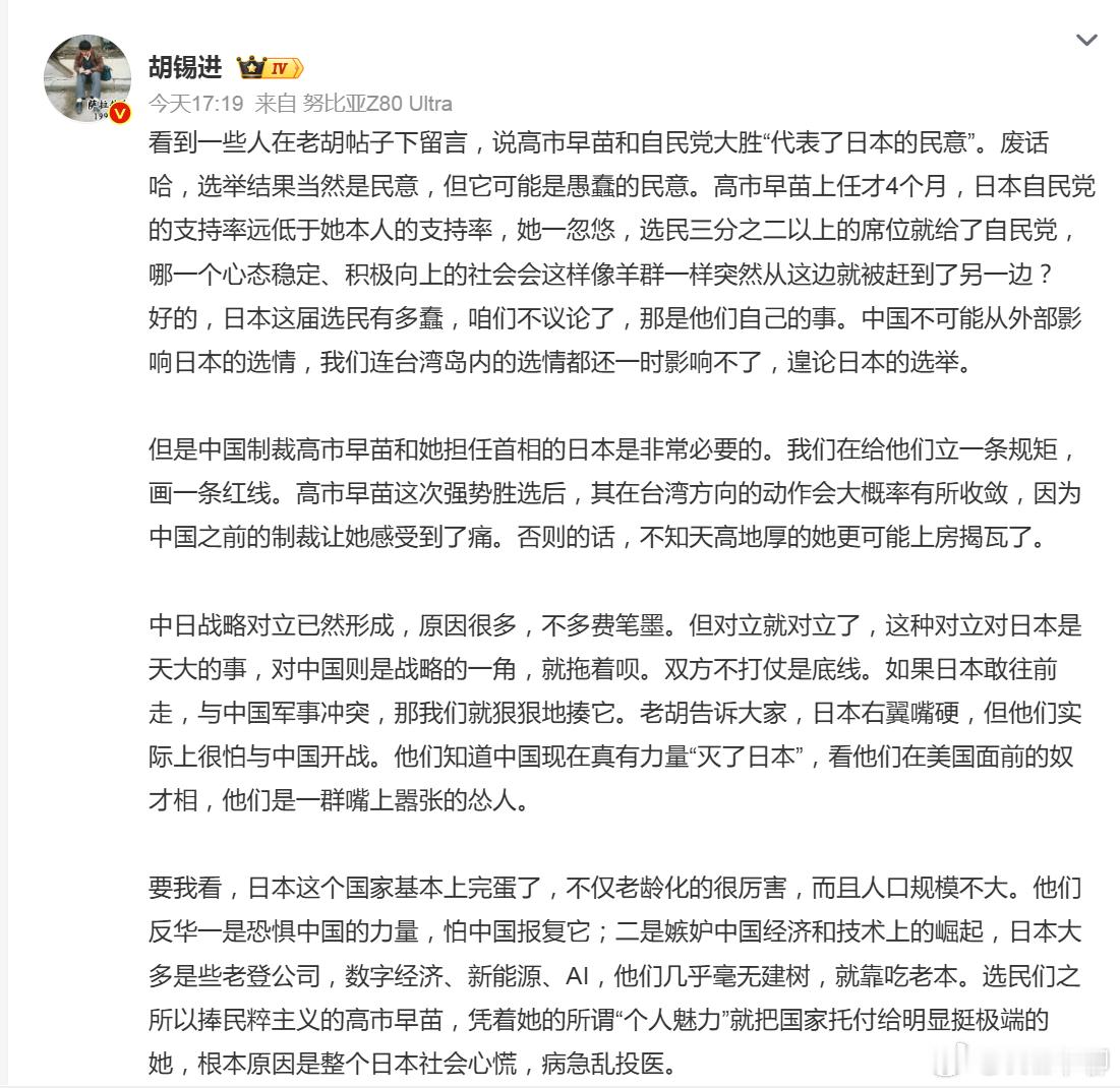 不仅日本民众选了高市早苗,其实很多中国民众是欢迎高市的,因为她明着坏。