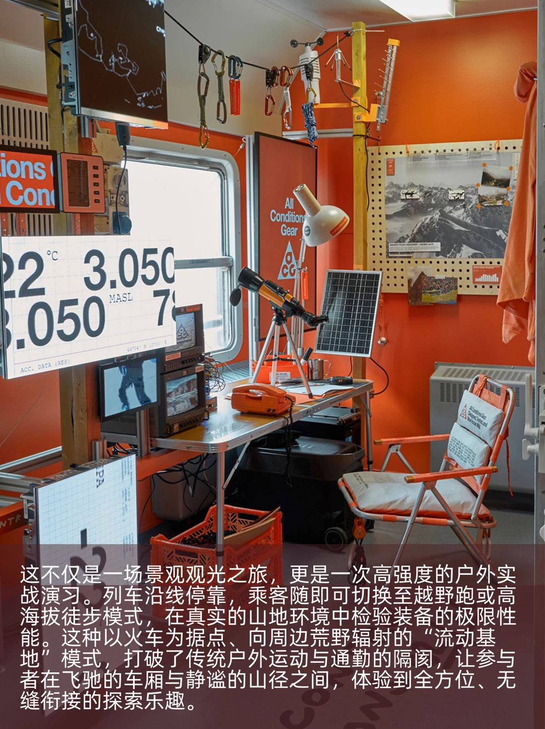 这不仅是一场景观观光之旅,更是一次高强度的户外实战演习。列车沿线停靠,乘客随即可切换至越野跑或高海拔徒步模式,在真实的山地环境中检验装备的极限性能。这种以火车为据点、向周边荒野辐射的“流动基地”模式,打破了传统户外运动与通勤的隔阂,让参与者在飞驰的车厢与静谧的山径之间,体验到全方位、无缝衔接的探索乐趣。