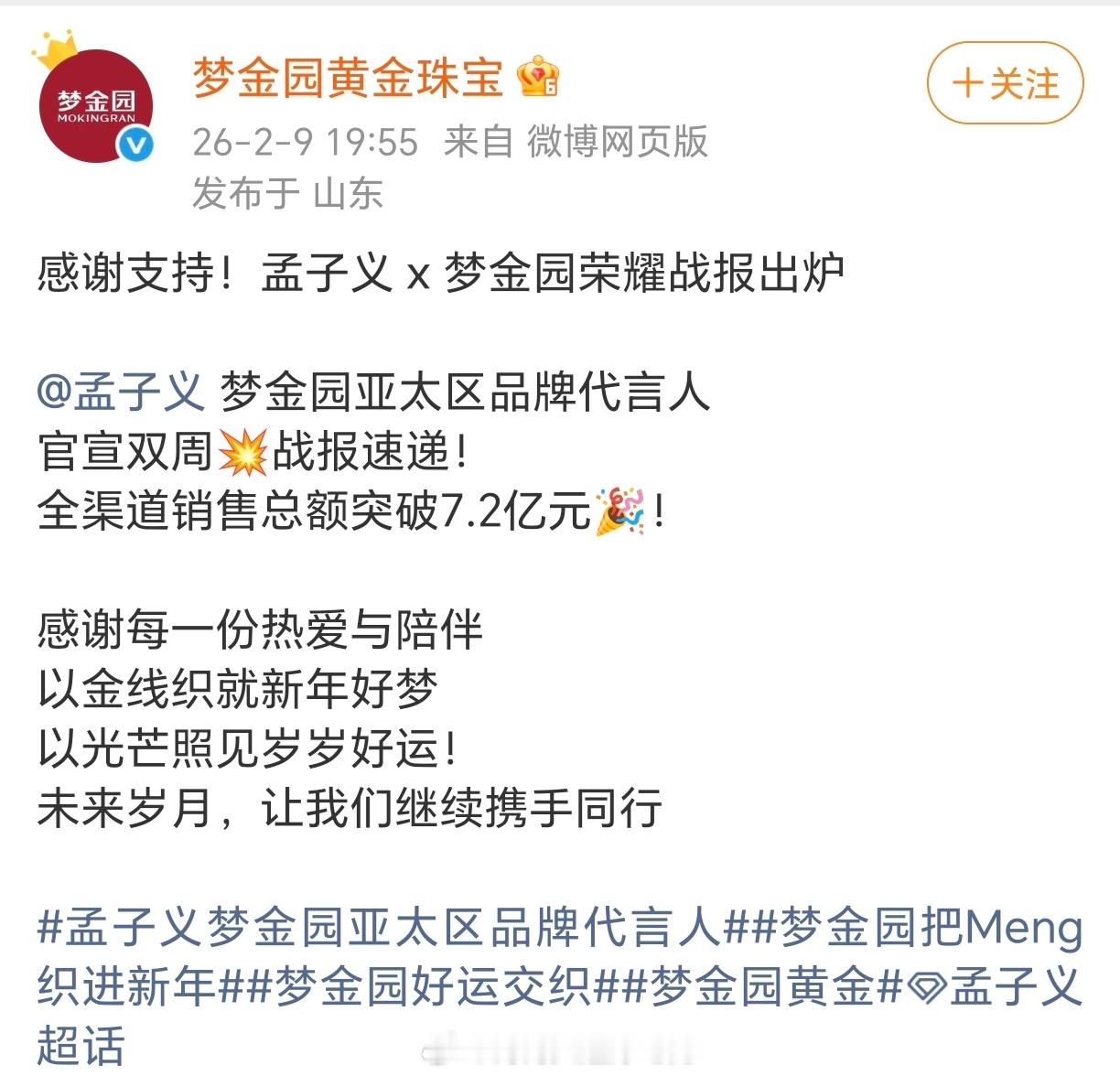 孟子义官宣孟子义梦金园亚太区品牌代言人 仅两周,【官方战报】带货7.2亿!就这个剧综双爆🌺牛!
