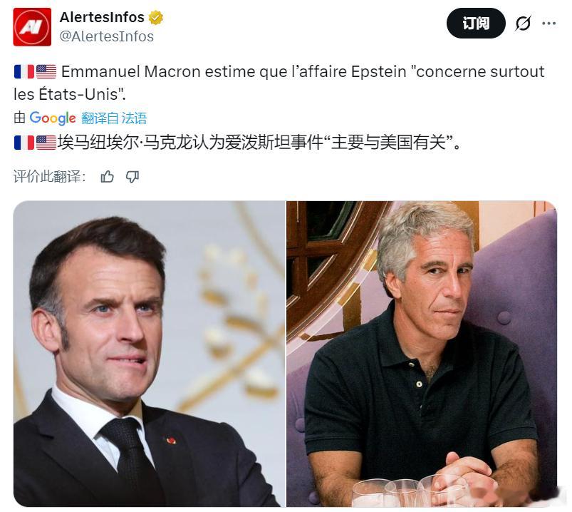 媒体消息:周一,法国总统马克龙撇清了法国与爱泼斯坦 的关系,称该“主要涉及”美国