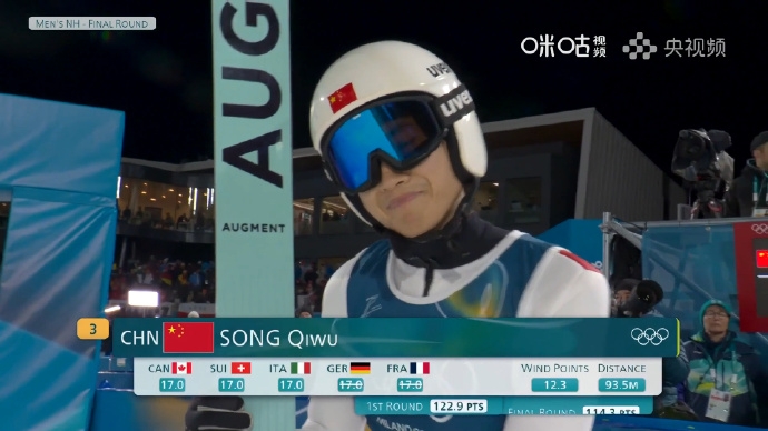 宋祺武刷新了中国体育代表团在此项目上的最好成绩,实现中国跳台滑雪男子个人标准台在冬奥决赛的首次亮相。