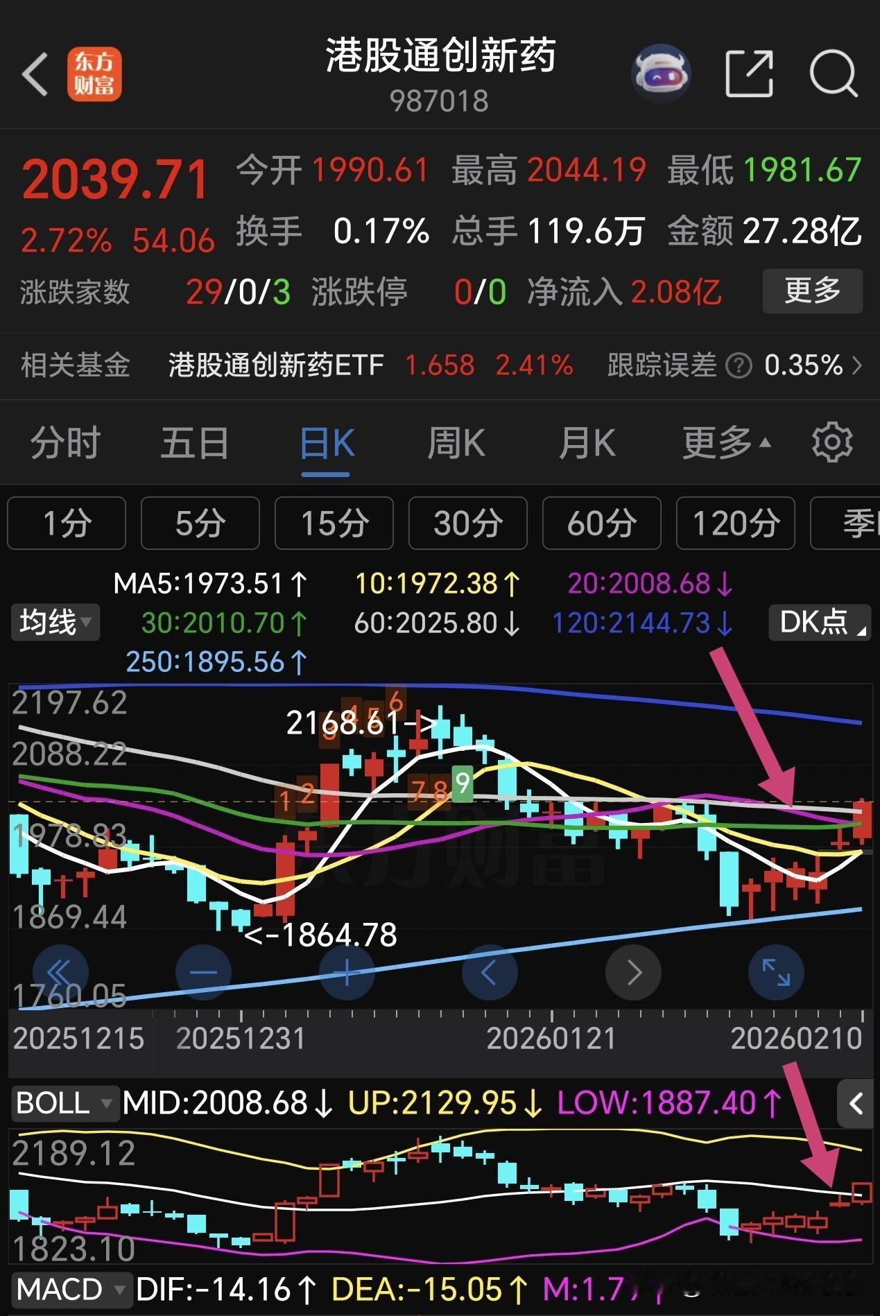 恒生医疗保健指数与港股创新药开启上涨模式,坐稳扶好!目前盘中已经突破了20日线压力位,站上布林线中轨,短期止跌企稳迹象,有创新药的朋友快熬出头了,不要被一天的反弹甩下车🚗,抗跌不抗涨,一涨就跑赚不了钱!