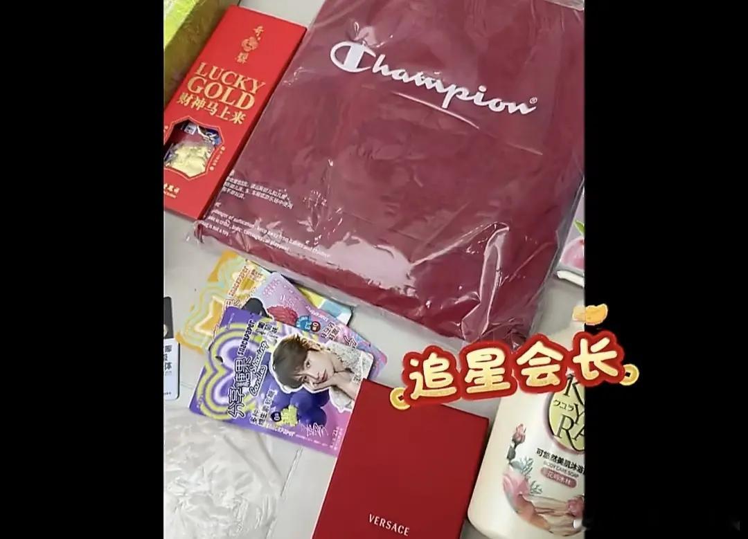 丁禹兮的工作室礼盒有老凤祥,范思哲,比音勒芬,暴龙眼镜、面霜和面膜、百度文库和网盘的会员卡还有冠军的衣服,东西很多啊,好大方的小丁!
