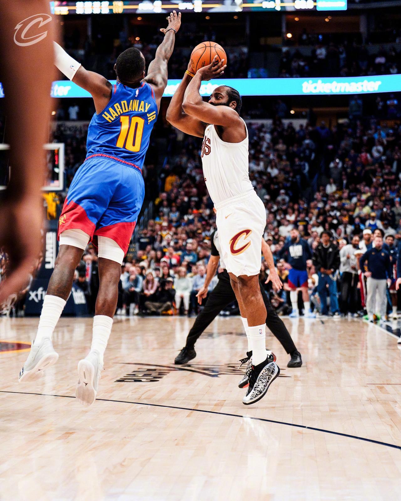 又是后撤步三分!记得哈登来到骑士之后的第一个进球就是他的后撤步三分,今天关键时刻哈登投进的绝平球又是他的后撤步三分,差点就是3+1了。 哈登来到骑士打了两场比赛,都是逆转取胜,打国王还能说是国王成色不足,但今天客场打掘金,绝对可以说是硬仗了,全场大部分时间都处于落后状态,赢得不容易。 而且哈登今天不光有关键三分,防守也很不错,又有前场板又有盖帽,最后那个协防也很给力