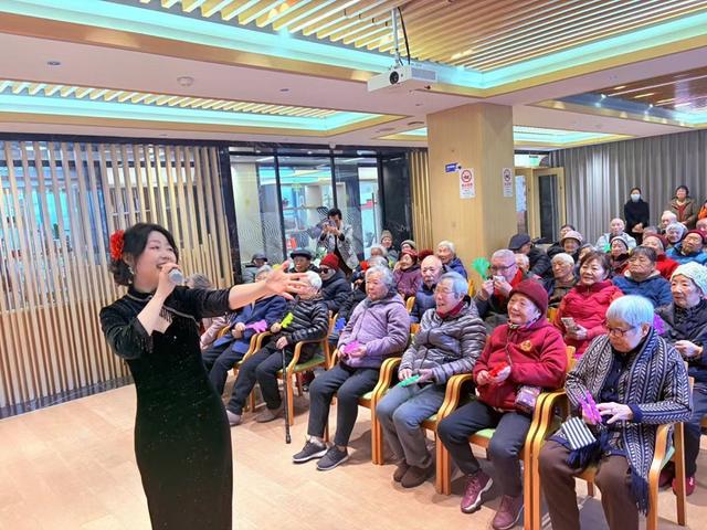 在云集新曹杨颐养院,一场温情满满的“君歌会”为老人们带来了别样欢乐,经典老歌回荡在现场,老人们脸上洋溢着笑容,不时响起热烈掌声。颐养院的手工区内同样氛围浓厚,老人们围坐一桌,专注地进行珍珠贴画创作、书写新春对联,指尖翻飞间,一幅幅色彩鲜亮、充满年味的作品跃然纸上,大家互相展示创作成果,彼此交流分享,现场暖意融融。
