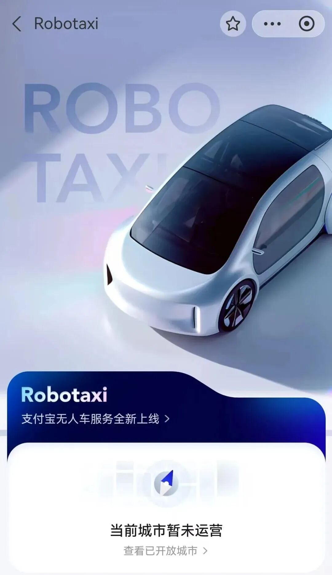 据官方客服,Robotaxi是支付宝出行频道提供的自动驾驶打车服务平台,目前聚合了小马智行等自动驾驶服务商,但尚未正式推出。