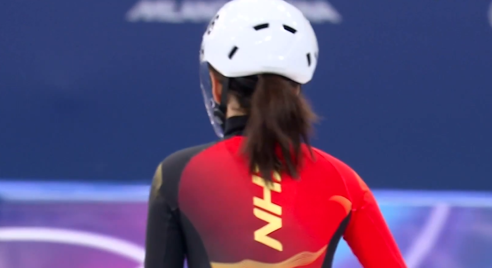 短道速滑女子500M预赛第三组,王欣然滑出43.30排名小组第一晋级。