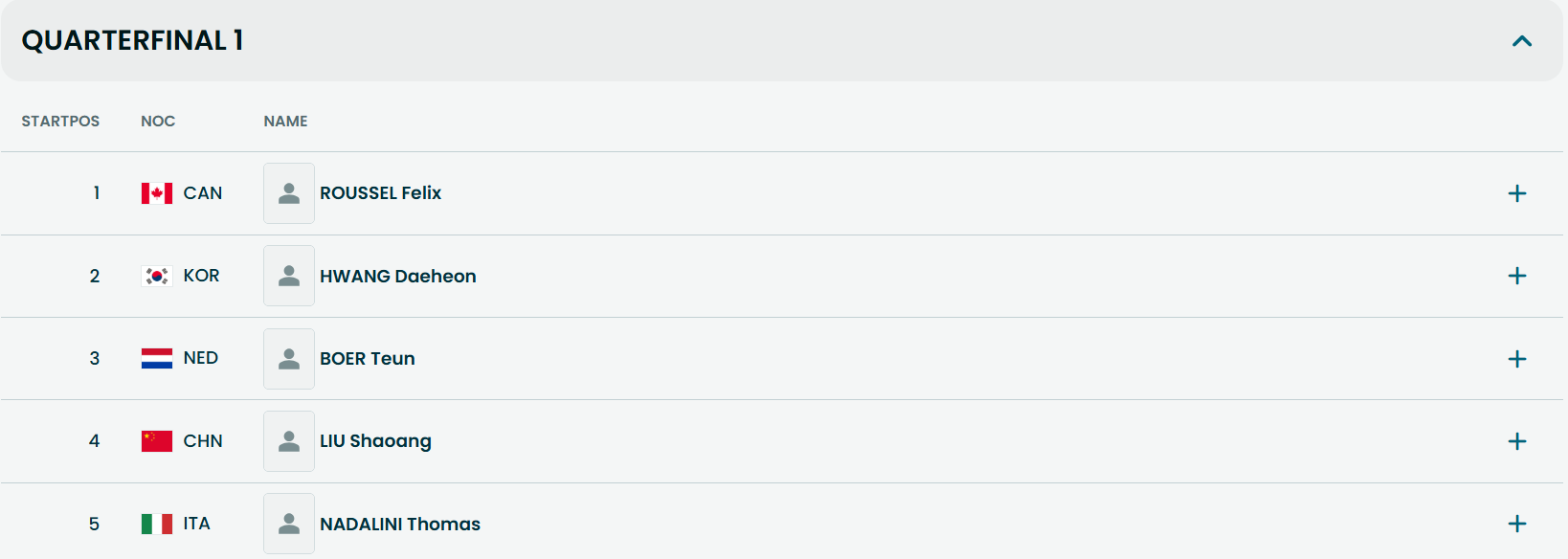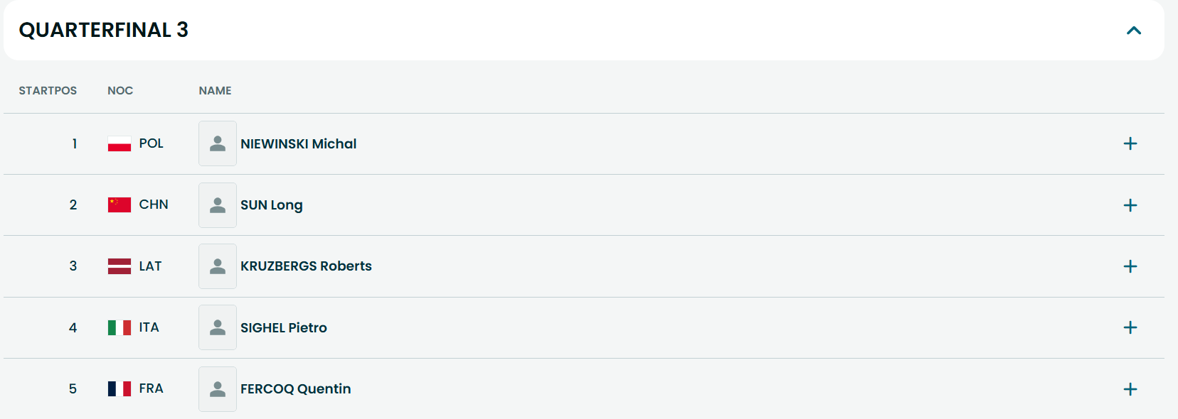 赛前,冬奥会官网更新了1/4决赛该项目的分组名单。