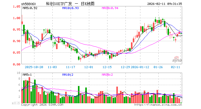 2月11日,科创50ETF广发(588060)开盘跌0.32%,报0.934元。科创50ETF广发(588060)重仓股方面,中芯国际开盘跌1.89%,寒武纪跌1.09%,海光信息跌1.54%,澜起科技跌1.46%,中微公司跌0.71%,金山办公跌0.83%,联影医疗涨0.23%,拓荆科技涨0.02%,芯原股份跌2.93%,沪硅产业涨0.58%。