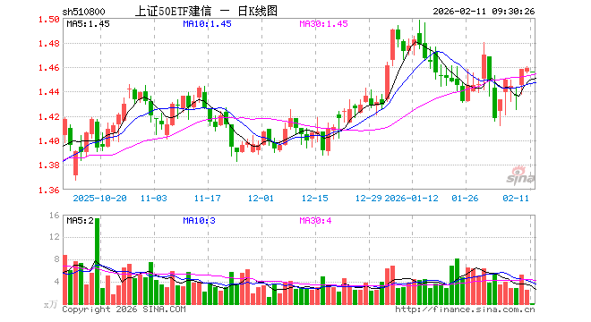 2月11日,上证50ETF建信(510800)开盘跌0.21%,报1.456元。上证50ETF建信(510800)重仓股方面,贵州茅台开盘涨0.00%,中国平安涨0.09%,紫金矿业跌0.54%,招商银行涨0.05%,兴业银行涨0.37%,长江电力涨0.04%,寒武纪跌1.09%,中信证券涨0.07%,恒瑞医药涨0.00%,工商银行涨0.27%。