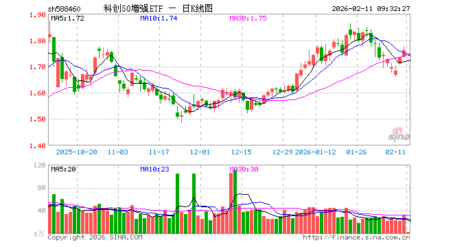 2月11日,科创50增强ETF(588460)开盘跌0.85%,报1.745元。科创50增强ETF(588460)重仓股方面,海光信息开盘跌1.54%,寒武纪跌1.09%,中芯国际跌1.89%,澜起科技跌1.46%,中微公司跌0.71%,拓荆科技涨0.02%,金山办公跌0.83%,芯原股份跌2.93%,盛美上海跌0.19%,九号公司涨0.45%。