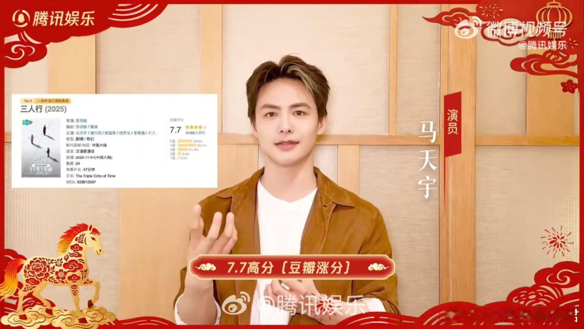 马天宇的马年祝福含马量超标 马天宇2025好事成双buff叠满 马天宇带着他的“马”量祝福来啦!事业生活全包圆,还贴心附赠家乡过年攻略。去年釜山提名+高分新作双buff,今年就等着看他继续“马”力全开!