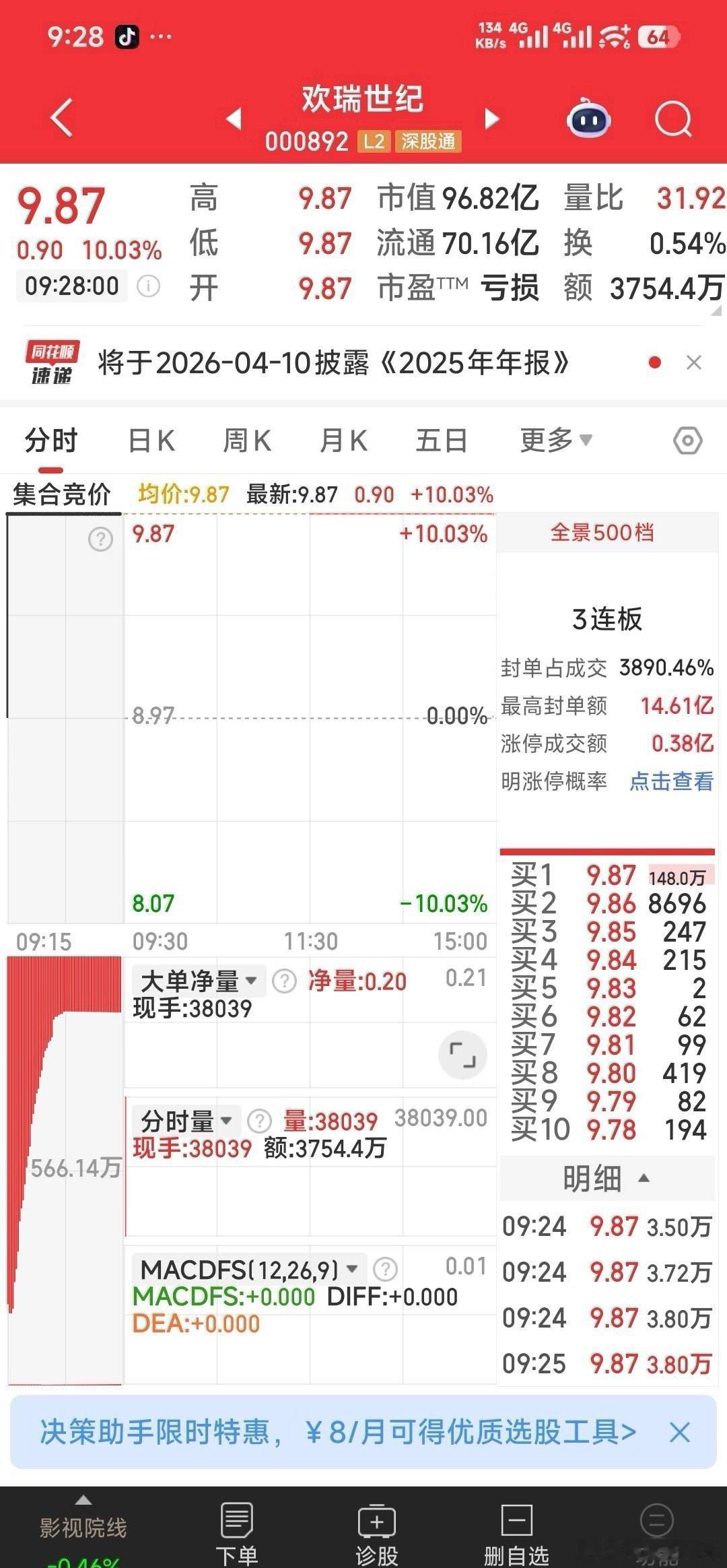 3,建仓狙击:华天科技,欢瑞世纪。