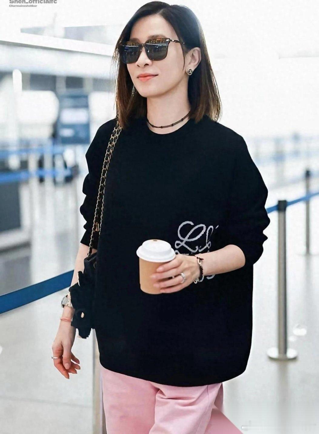 看了佘诗曼新剪了波波头年轻20岁!穿黑色毛衣粉色阔腿裤,减龄时髦
