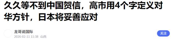 高市久久等不到中国贺信!48小时已过!外交部对日发出警告! 2026年2月8日,日本众议院选举结果正式出炉,现任首相高市早苗带领的自民党拿下了316个议席,超过了众议院465个总席位的三分之二。这个结果让自民党在国会里拥有了绝对优势,以后想推进什么政策、通过什么法案,阻力都会小很多,高市早苗也能继续担任日本首相。 按国际上的常规做法,一国重要选举产生新的执政者后,不少国家都会发贺信表示祝贺。但从8日选举结果公布到10日,整整48小时过去了,高市早苗始终没等到中国的贺信。 这不是中国故意拖延,而是有实实在在的原因,核心就是高市早苗的一系列言行,让中国没法轻易送上祝贺。首先得说说高市早苗这个人的政治主张。 她上台后一直没少发表伤害中国利益的言论,最让人不能接受的就是涉台问题。台湾是中国不可分割的一部分,这是国际社会公认的事实,《日中联合声明》里也早就明确了这一点。 可高市早苗偏偏说些不该说的话,搞“台湾有事”那一套,明摆着是干涉中国内政,破坏中日关系的政治基础。 日本国内不少有识之士都批评她,说她这是蓄意制造地区紧张,完全没有合法性。更让人担心的是,高市早苗还一心想推动日本修宪扩军。 这次自民党拿到超过三分之二的席位,刚好满足发起宪法修正国民投票的条件。她想修改日本的和平宪法,把自卫队正式写进宪法里,让日本摆脱战后的军事限制,还打算增加防卫预算、放宽武器出口限制。 这种做法让很多人想起了日本的军国主义历史,亚洲各国都经历过日本侵略带来的灾难,自然对这种扩军动向高度警惕。 日本民众也上街抗议,说她这是倒行逆施,会让日本走上危险的道路。 还有历史问题,高市早苗所在的自民党一直有参拜靖国神社的传统,靖国神社里供奉着14名甲级战犯,是日本军国主义的象征。 中国外交部早就明确表态,日本应该正视和反省侵略历史,在靖国神社等重大问题上谨言慎行,和军国主义彻底切割。可高市早苗的政府在历史问题上始终没有明确的反省态度,这让包括中国在内的很多亚洲国家都难以接受。 正是因为这些原因,中国没有给高市早苗发贺信。 而在选举结果出来后,中国外交部的警告也很明确,核心就是提醒日本不要忘记历史,不要搞军备扩张,不要干涉别国内政。这个警告不是空穴来风,而是针对高市早苗政府的错误言行作出的回应。可能有人会问,日本这次选举为什么高市早苗能赢这么多?其实这里面有不少门道。 她提前解散众议院,选举从解散到投票只隔了16天,创下了战后最短纪录,让在野党根本没来得及充分准备。而且竞选的时候,她故意回避了消费税、安保这些有争议的话题,专门讲民生问题,争取到了不少中间派选民的支持。 但就算赢了选举,她的政策也面临着很多质疑,日本民众担心,把钱都花在扩军上,医疗、养老这些民生福利就会受影响。 国际社会对高市早苗继续执政也普遍担忧。不少外国学者批评她的涉台言论违背国际法,会破坏地区和平稳定。大家都看得很清楚,高市早苗的右翼倾向越来越明显,日本政治正在慢慢向右转弯,如果不加以克制,不仅会影响中日关系,还会让整个东北亚的安全形势变得紧张。 中国对待日本的态度一直很明确,我们尊重日本人民的选择,也希望和日本发展友好合作关系,但这必须建立在一个中国原则、尊重历史事实、不干涉内政的基础上。 高市早苗如果真的想改善中日关系,就不能只说漂亮话,得拿出实际行动来。停止涉台错误言论,放弃修宪扩军的危险想法,正视历史、尊重邻国利益,这才是正道。 现在48小时的贺信窗口期已经过去,中国的态度已经很清晰。接下来就看高市早苗政府怎么选择了,如果继续沿着错误的道路走下去,中日关系很难有好的发展;如果能及时纠正错误,拿出诚意,两国关系才有改善的可能。 对于我们来说,不管日本政局怎么变,维护国家主权和领土完整、守护地区和平稳定的决心,从来都不会动摇。