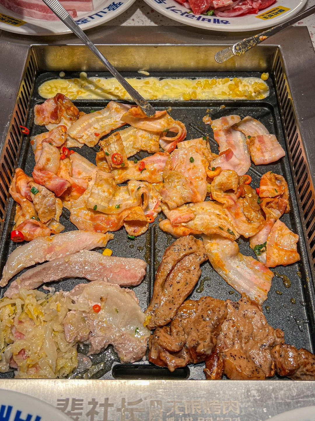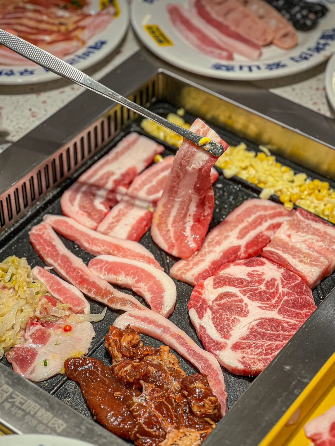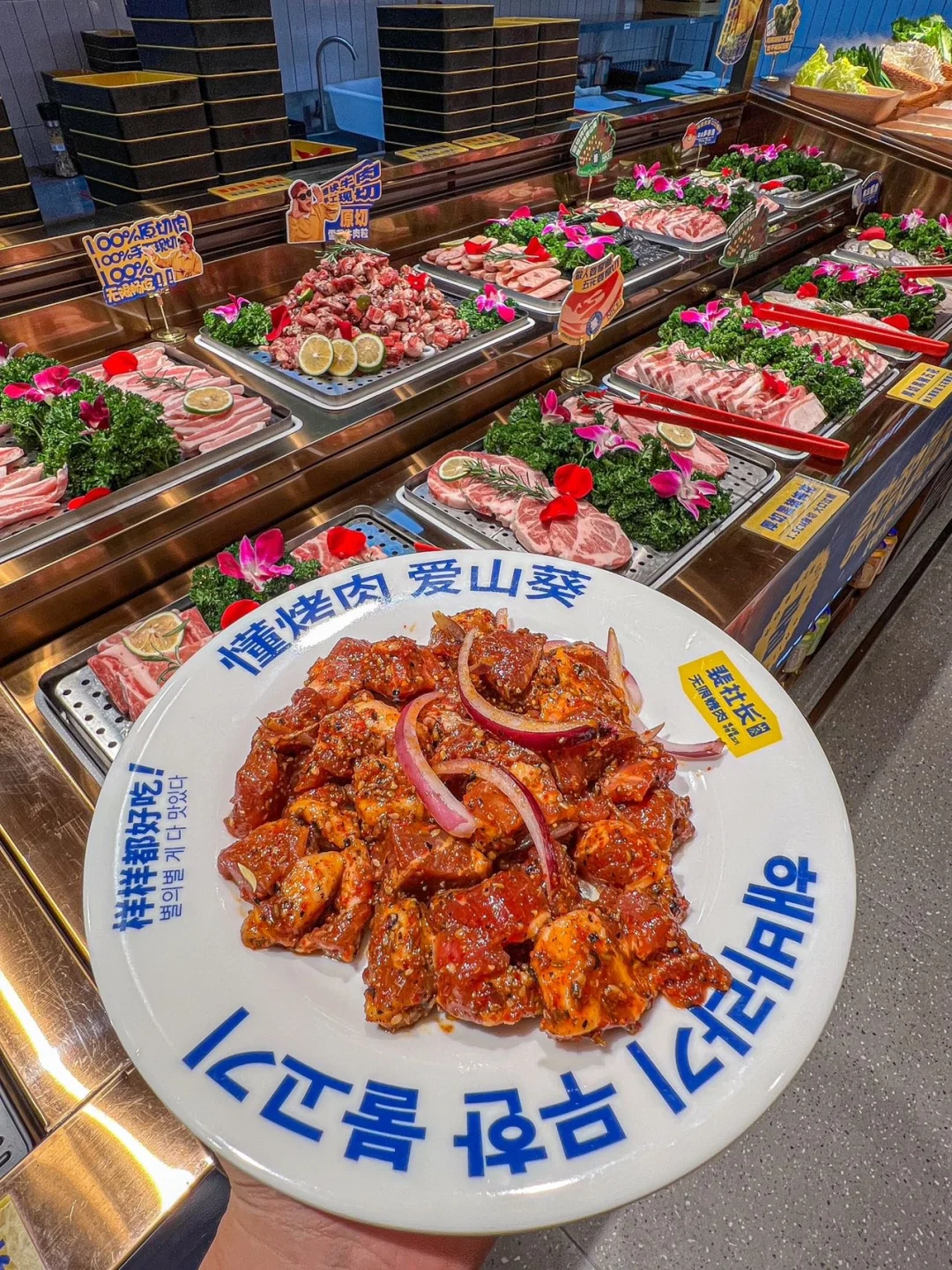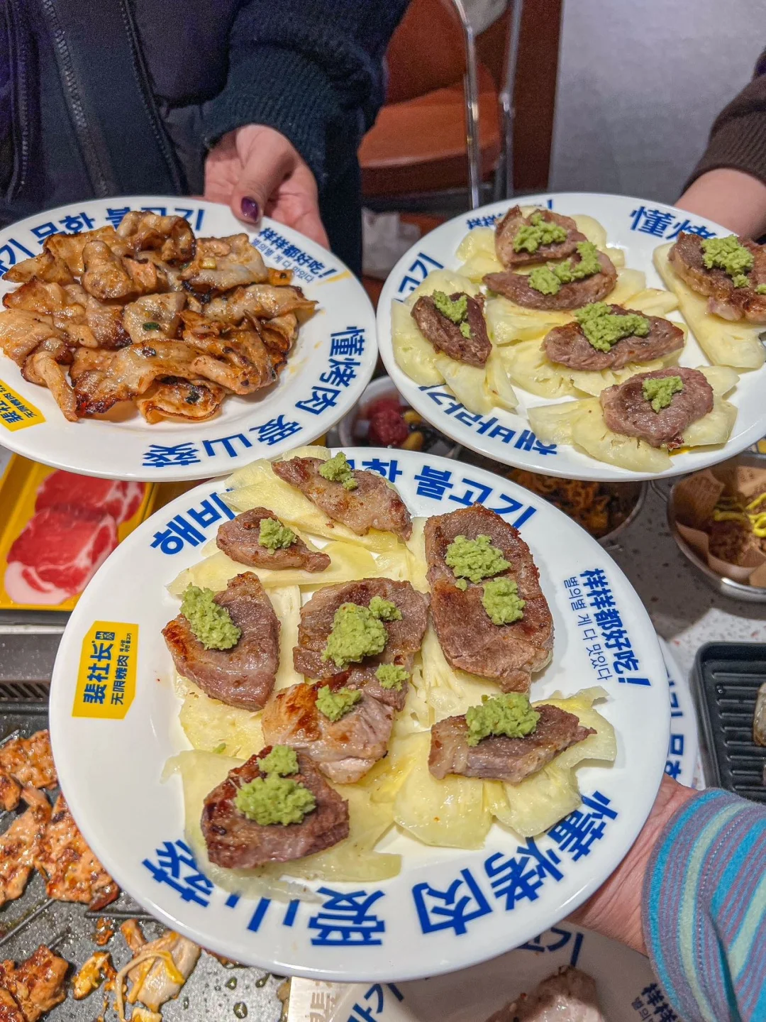 包河万达三楼的裴社长烤肉,韩里韩气直接拉满,仿佛在追韩综吃烤肉! ✔️原切肉柜 厚切五花、松阪肉、牛肉粒…现切现拿,品质绝了 烤盘上滋滋作响的瞬间,肉香混着炭火香,韩综同款快乐get✅ 蘸上现磨山葵酱,裹着生菜+蒜片,一口下去直接封神! ✔️韩式小吃 热乎乎的关东煮暖到心窝,炸鸡外酥里嫩一口爆汁 火鸡面、韩式拌饭无限续,还🈶️辛拉面、芝士年糕 店里韩系氛围拉满,人均几十实现烤肉自由,合肥的韩料脑袋快冲!🥰🥰🥰