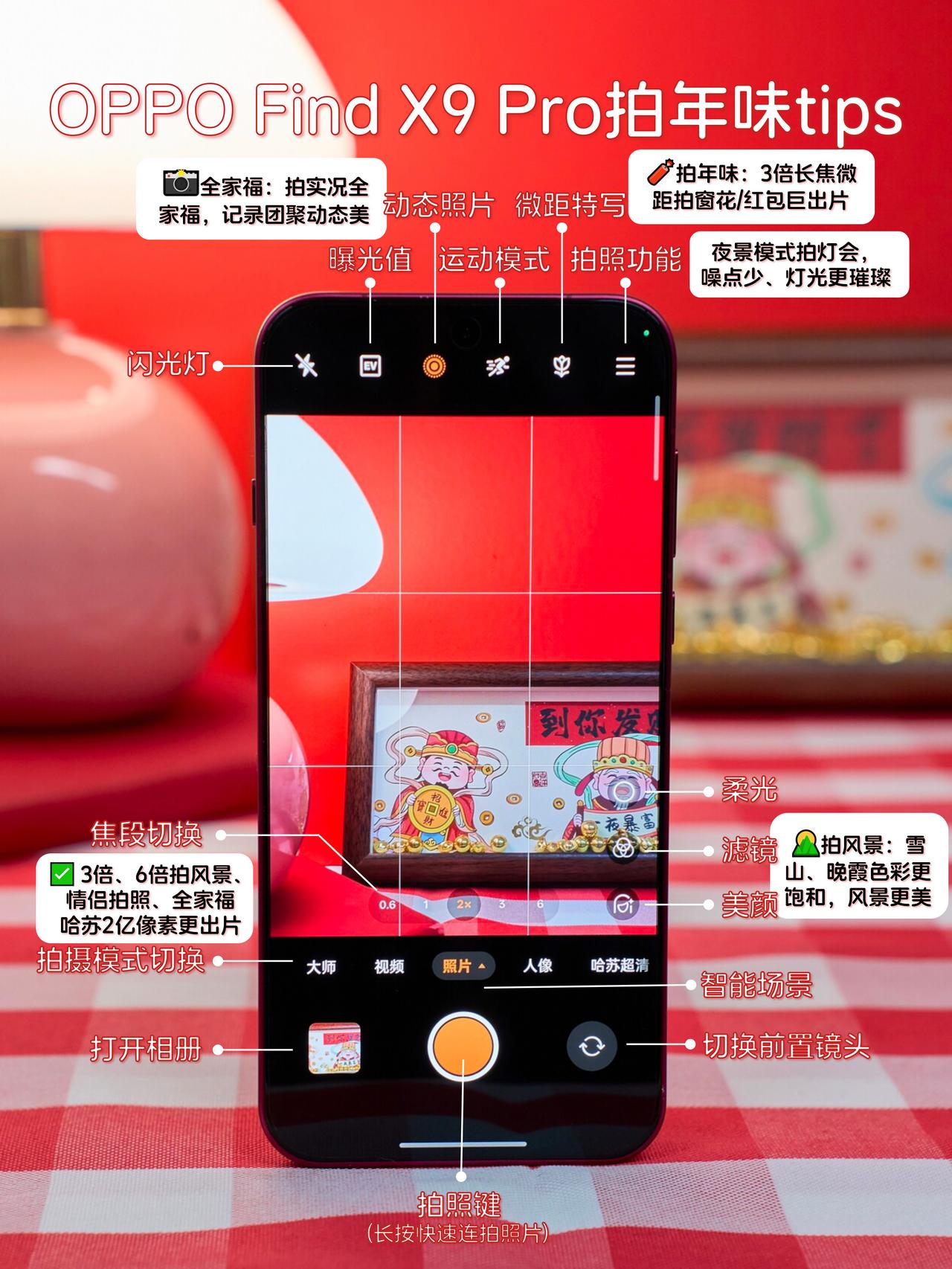 OPPO新春水印绝了,谁用谁高级! 没人觉得今年OPPO的马年新春水印很好看吗?? 用我的OPPO Find X9 Pro随手拍挂起的灯笼、写福字的现场, 原本就不错,但加上专属新春水印后,氛围感和仪式感直接拉满! 而且水印有好几款样式,有红的也有金色的, 而且祝福语和图案设计也不会给人土土的感觉😂,值得一个夸夸~ -- 这里顺道给大家分享几个新年拍照小技巧:👇 🧨拍年味: 把红灯笼、春联、福字作为视觉中心,背景尽量简洁 用OPPO Find X9 Pro的三倍长焦,虚化背景突出主体 试试微距特写,拍窗花、红包的细节超惊艳! 🌄拍风景: 用 Find X9 Pro 的多光谱采集,雪山、晚霞色彩更饱和 夜景模式拍灯会,噪点少、灯光更璀璨 实况照片拍烟花,动态效果绝了! 📸全家福: 长辈居中,按长幼顺序排列,服装尽量协调 开启 "出圈实况拼图",一张照片定格多个拜年瞬间 利用门框、窗户做框架构图,更有故事感 -- PS:现在正好赶上OPPO Find X9系列年货节闪促减200至300,叠加国补至多能省800🐂 甚至还能加赠价值198的精美贴金礼盒,主打一个“连吃带拿”,年前换机美滋滋~ OPPO趁现在OPPOFindX9Pro 新春水印 过年拍照 审美在线 年货节 我的数码生活 全家福拍照技巧 咔嚓一张新年照 旅拍神器