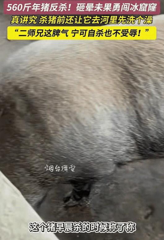 “万万没想到!”山东烟台,一男子家杀年猪,不料,因猪太重,4个人按不住,男子就想着拿东西先把猪给敲晕在杀,不曾想猪没被敲晕还因此受惊逃跑了,由于男子家离水库比较近,猪不知道往哪里跑就一头扎进了水库的冰窟窿里。 烟台水库的午后,风是带刀子的。站在岸边如果不捂严实了,呼出的白气能瞬间在眉毛上结霜。也就是在这个把人冻透的时间点,冰面上那个炸裂开的黑窟窿旁,终于有了动静。 这绝对不是那种冬捕丰收的喜庆场面。岸边那几个穿着厚棉袄的汉子,费了半天劲,从刺骨的冰水里拖上来一个庞然大物。那是一头黑毛猪,身板硬得像块铁,早就没了气。 这不是一般的家畜,而是一头重达560斤的巨物。为了这头猪,这家人足足喂了一年的饲料,把它喂得像辆小坦克。可现在,这辆“坦克”安静地躺在冰面上,浑身滴着冰水,只留给主人一个无比尴尬且昂贵的结局。 把时间的指针拨回清晨,这本该是一场充满烟火气的杀年猪仪式。户主心里是有数的,560斤的活物,根本不是一两个人能摆平的。所以他特意摇了人,凑齐了四个身强力壮的亲友,组成了顶配的“屠宰小队”。 按理说,四个壮汉对付一头猪,这就是降维打击。但人们往往在静态数据面前,严重低估了生物求生的本能。当四双手按上猪背的那一刻,事情就开始失控了。 猪这种生物,平时看着笨重迟缓,哼哼唧唧,可一旦嗅到了生死的味道,那种爆发力是惊人的。560斤的体重配合肌肉的剧烈抽搐,瞬间产生的动能,直接让四个成年人的重心像纸片一样被掀翻。 院子里乱成了一锅粥,尘土和叫喊声混在一起。眼瞅着按不住,户主脑门一热,做了一个致命的决策:他抄起手边的家伙,试图给猪头来一下狠的,想通过物理击打把它震晕。 这一招在农村的老把式里或许有用,但这次,它成了引爆火药桶的最后一颗火星。那一记重击并没有击穿猪的防御,反而剧烈的疼痛瞬间激活了它的肾上腺素。 这头黑猪彻底疯了,它不再是挣扎,而是进入了狂暴的应激状态。它猛地一甩头,像一颗出膛的炮弹,直接冲破了那个脆弱的人肉包围圈。 一旦冲出了院门,这事儿就彻底不由人说了算了。猪已经失去了方向感,唯一的念头就是远离那些给它制造疼痛的人。它慌不择路,一头扎向了离家不远的水库。 这里埋伏着一个致命的地理陷阱。水库的冰面乍一看平整如镜,其实暗藏杀机。尤其是那些曾经被打鱼人凿开过的冰眼,即便重新冻上,承重力也大打折扣。 猪哪里懂这些?它带着几百斤的惯性冲上去,甚至没给冰面反应的时间。只听见咔嚓一声脆响,冰层崩裂,巨大的水花溅起,那团黑影瞬间就被吞噬了。 追到岸边的四个人,刹车声还没停稳,心就凉了半截。冰面上只剩下一个黑黢黢的窟窿,连个水泡都没冒上来。 这时候谁敢下去?哪怕再心疼,也没人敢拿命去赌冰层的厚度。大家只能在岸边干着急,拿着长杆子试探,眼睁睁看着时间从清晨流逝到中午。 等终于把猪打捞上来的时候,一切都晚了。懂行的人只要看一眼猪尸的颜色,就知道这笔买卖亏大了。 杀年猪最讲究的就是那一刀放血。血放净了,肉才鲜亮。而这头猪是活生生淹死、冻死的,血液全部凝固在血管和肌肉里。此刻,猪身上肥肉泛红,瘦肉发紫,一股散不掉的腥气已经透了出来。 这几百斤肉,大概率是废了。这一年的饲料钱、精力,还有这本该热热闹闹的年味,全都随着那个冰窟窿沉了底。 这事儿被传到了网上,不少人把这当成个段子看,说什么“二师兄最后的倔强”,或者戏谑它“宁死不屈”。屏幕外的看客笑得开心,因为痛感没有传导到他们身上。 但如果我们把视角从滑稽的猪身上移开,盯着那个冰窟窿多看几秒,你会感到一种后背发凉的恐惧。 农村这种自发组织的杀猪局,说白了就是个缺乏风控的草台班子。工具是随手的,方案是临时的,甚至连场地周边的风险那个近在咫尺的水库都被完全无视了。 如果当时那四个杀红了眼的汉子,为了追猪也跟着冲上了冰面呢?如果掉进那个窟窿里的不是猪,而是那个挥舞着棍棒的户主呢? 那就不再是一个关于“惜财”的故事,而是一起足以让几个家庭破碎的安全事故。这头560斤的黑猪,用一种极其惨烈的方式,给所有人上了一堂昂贵的物理课:在失控的力量和脆弱的冰层面前,人那点侥幸心理,真的不值一提。