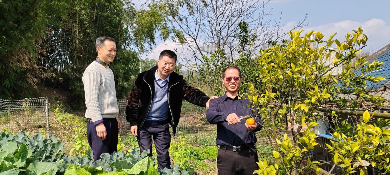 腊月二十四,在杨山的暖阳里 今天是腊月二十四,南方的小年。 上午在龙城大酒店,为秀春女儿的婚事贺喜。当年师范的老同学们坐了满满几桌,杯盏交错间,都是近四十年前在泸县师范的旧时光。席后,有人凑了牌局,有人围坐喝茶,我却和顺华、晓薇约了,随富昂去顺江杨山他老家耍。 车子拐进乡间小路,水泥路尽头就是富昂同学的家。那是新修的平房大院,青瓦白墙气势恢宏,室内文娱体育设施齐全,门前的院坝宽敞明亮,一眼望去就觉得踏实。房前屋后的果树,是这院子里最热闹的景致。沙糖桔、沃柑、柚子树……枝桠交错,叶子绿得发亮,金黄的果子挂在枝头,像缀了一树树的小灯笼。 一进院,富昂就笑着把我们往果树边引。“刚熟的,尝尝鲜!”他抄起修枝剪,手腕一翻,“咔嚓”一声,一颗圆滚滚的沙糖橘就落进了掌心。我也接过剪刀,学着他的样子,小心地避开细密的枝刺,对准果蒂。那一声轻响,像是把整个冬天的阳光都剪了下来。果子带着枝叶的清香,表皮凉丝丝的,轻轻一捏,指腹就沾了一层细密的油光,那是桔子特有的甜香。 顺华也来了兴致,他比我手巧,几下就剪下一串,塑料桶里很快堆起了金黄的小山。晓薇则在一旁,迫不及待地剥开一颗。她的指尖轻轻一旋,薄如蝉翼的果皮就裂成了几瓣,露出晶莹剔透的果肉。她掰下一瓣送进嘴里,眼睛一下子就亮了,“好甜!”清甜的汁水在舌尖爆开,带着阳光的温度,那是记忆里最纯粹的味道。 我们在院坝的椅子上坐下,面前的小方桌上堆着刚摘下的桔子。富昂泡上一壶清茶,热气袅袅升起,混着果香,在暖阳里慢慢散开。院角的菜园里,油菜花正开得热闹,嫩黄的花瓣在风里轻轻摇曳,他家养的蜜蜂也嗡嗡地飞着,进进出出,把整个院子都搅得生机勃勃。 太阳越发清朗,晒在头顶,晒在后背,暖得人浑身发酥。我们聊着师范时的糗事,聊着这些年的奔波,从康定的高原风雪,到成都的市井烟火,再回到泸县这方小小的院子。时间好像慢了下来,风也软了,连空气里都裹着一股甜丝丝的暖意。 临走时,富昂又装了满满一袋桔子。说:“带回去,让大家也尝尝杨山的太阳味。” 车子驶离小院,回头望去,那片金黄的果树在阳光下闪着光。今天的小年,既有盛宴,更有在这满院的橙香和暖阳里,尝出了最踏实的年味儿。