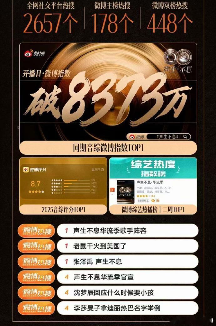 张泽禹2026年第一份战报一打开声生不息战报就看到张泽禹,开年第一份成绩单直接拉满,热搜第一实至名归