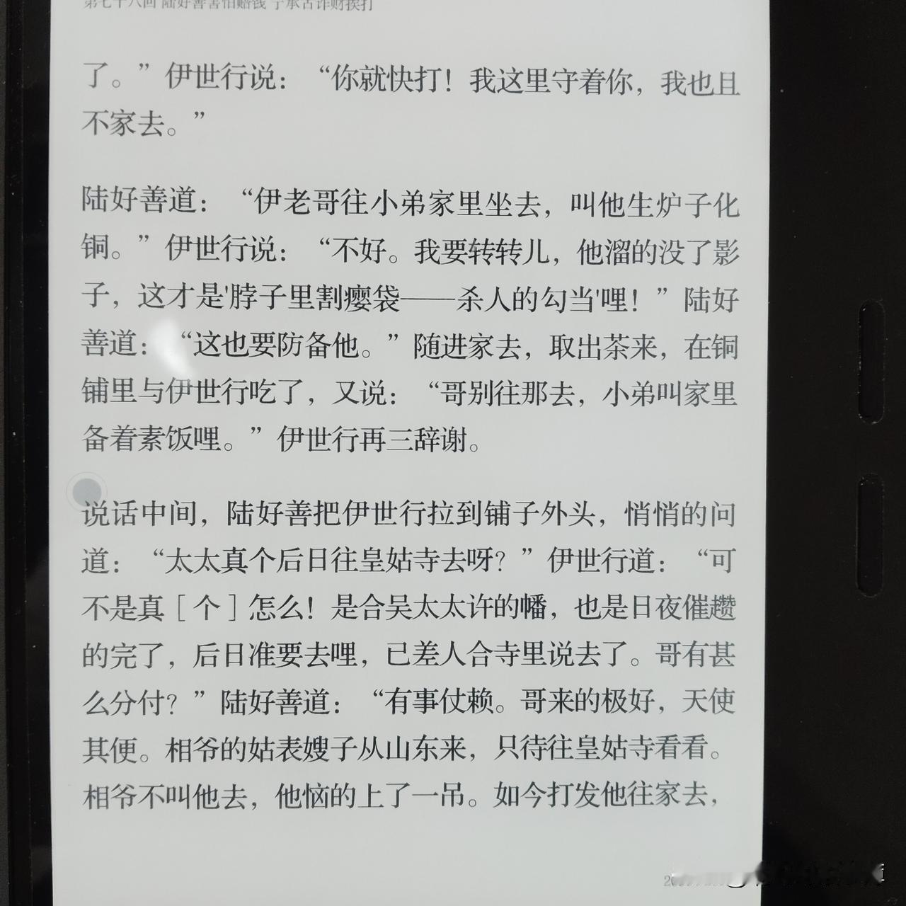 《醒世姻缘传》:薛素姐为去旅游不惜吊死。 第78回,薛素姐来到京城,想去皇姑寺看看,但是皇姑寺是皇家香火院,平民非节令不能去。 素姐是猛熊女将御驾亲征,一哭二闹三上吊非要去不行。先是在亲戚家上吊,后来坐轿子里回老家拔下金钗就要捅喉咙,说她就是变成鬼也要去皇姑寺游荡。 跟班陆好善实在没办法,总不能让素姐死在轿子里吧,只好把她抬回草帽胡同自己家。 西周生也不想让素姐死在第78回,于是就拉出来一组小人物——伊世行和支一骥。 他俩虽是工具人,廖廖几百字,就有血有肉,过目难忘。 伊世行是皇亲徐太太家管轿子的,他负责的轿子,铜环被人偷了三个,他提前三个月就给足了铜匠支一骥银子,请他打三个轿子上的铜环。 三个月跑了十几趟,一个来回三十里地,驴钱也不知花了多少。支一骥就是打不好铜环。 按照支一骥的说法,不到截止日期,不用着急,耽误不了用不就行了。 伊世行说徐太太后天去皇姑寺上香,今天必须把铜环打好。支一骥说明天打好,不误你后天。 最后伊世行把支一骥踩打了顿,还是陆长善出面说情,才了了。 薛素姐经陆长善介绍,通过伊世行,扮成了徐太太的仆妇,又是磕头又是跟着跑,最后终于进了皇姑寺畅游一番,还蹭了美食,十分满足。 看来素姐是真的喜欢旅游的,就算拿命和尊严去换也无所谓。 伊世行为了轿子铜环提前三个月就预定,来回跑了十几个三十里,真是个责任心超强的员工。 在工作上,对自己十分有要求。 即使这样认真负责的好员工,仍然会屈服于人情,帮陆长善把素姐安排进仆妇队伍,这要让徐太太知道了,肯定也是要责罚的呀。 而支一骥是另一类员工,他只求结果不内耗,“不耽误事就行”是工作准则。