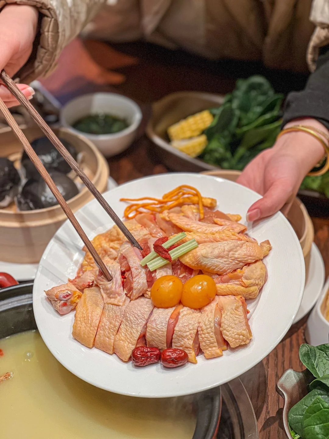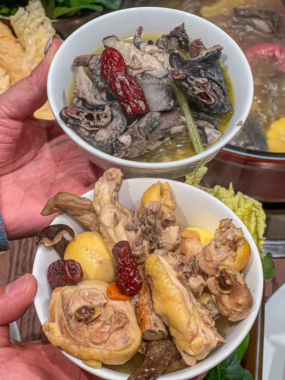 家人们!合肥政务区挖到宝! 这家鸡煲店我能连吃一周! 店里的装修,非常的温馨 天冷来这吃一锅,直接幸福感爆棚!🥰 ✔️海底椰猪肚鸡锅底 椰香+肉香的组合,谁顶得住啊! 先喝一碗汤,清甜不腻,太舒服了! 山林鸡煮5分钟,肉质紧实嫩滑 蘸上秘制蘸料,一口下去香到跺jio jio ! ✔️手打牛肉丸,肉质鲜嫩! ✔️腊味双拼煲仔饭,chao香! 里面的腊肠我的zui爱! 政务区的宝子们,赶紧冲! 冬天这一锅真的暖心又暖胃!💕💕💕