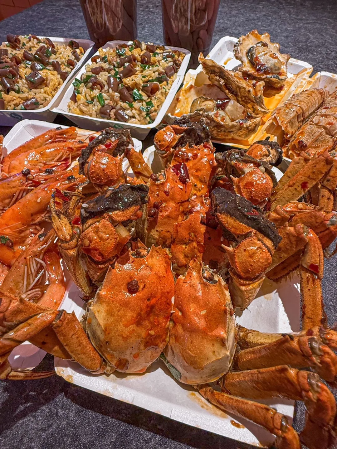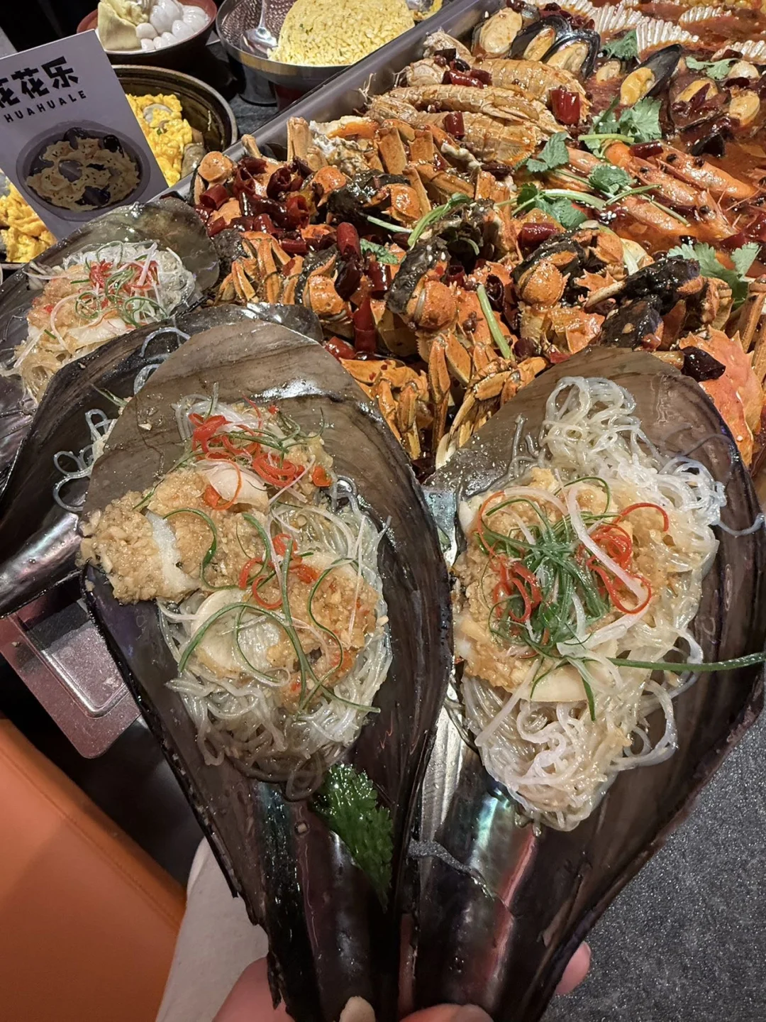 海鲜大咖直接闭眼点,生蚝、皮皮虾、红扇贝堆得满满一大盆,食材丰富到挑花眼,每一口都是新鲜的海味儿,聚餐吃超有面儿~