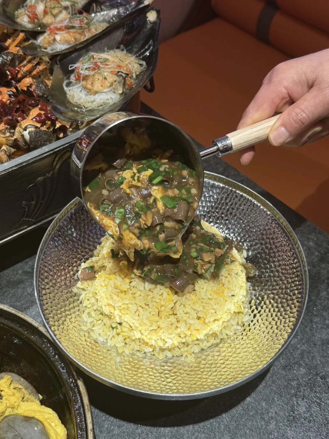 海肠炒饭直接封神!用的鲜活海肠处理得超干净,脆弹的口感太爱了,粒粒米饭都裹满鲜醇汤汁,拌开一口炫一碗,鲜到停不下来!😋